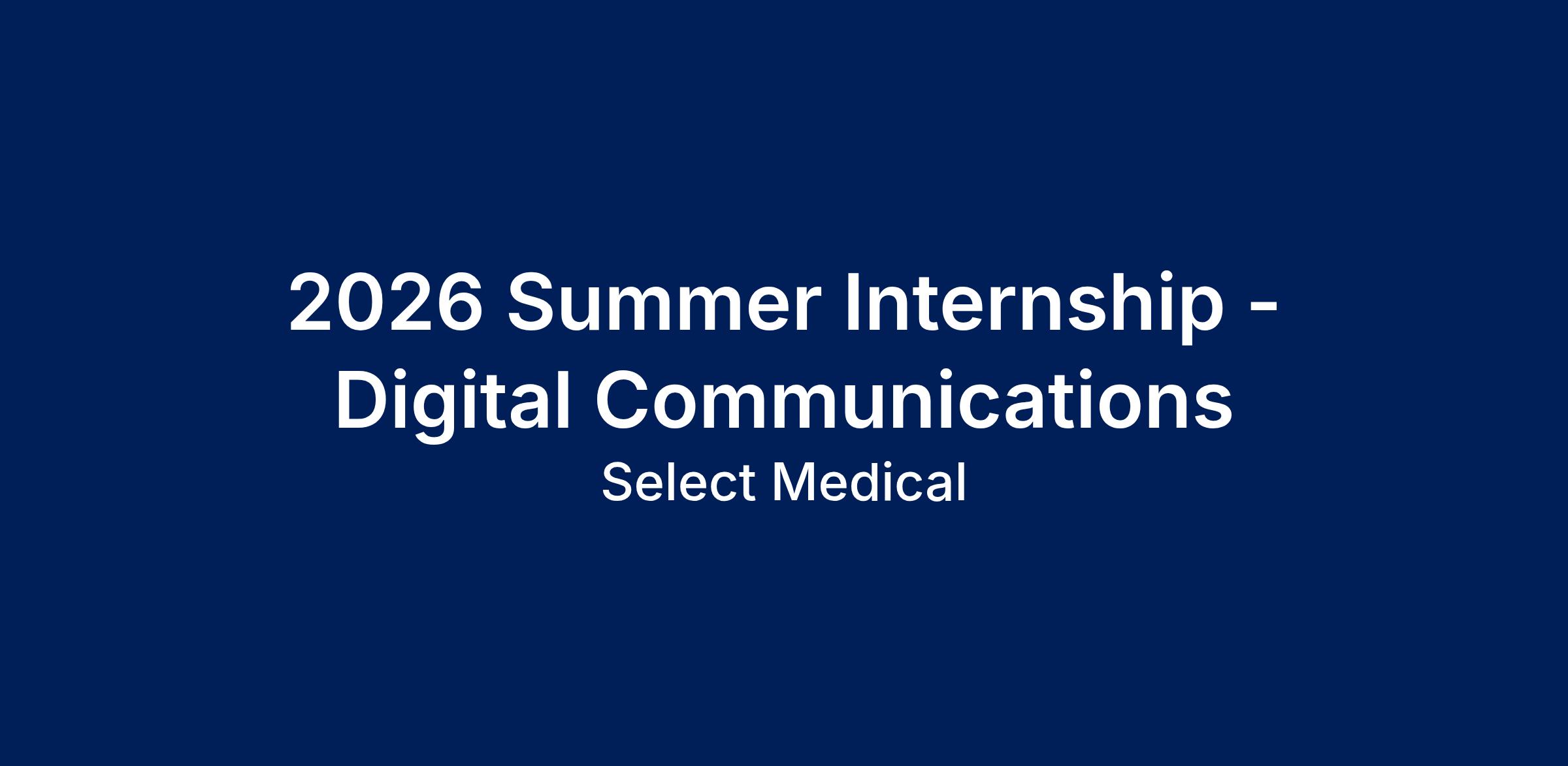 Select Medical is pleased to offer the 2026 Summer Internship Program at our corporate office located in Mechanicsburg, Pennsylvania. This 12-week paid internship is designed for college juniors or seniors who wish to study and experience the operations of a health care company with multiple subsidiaries throughout the U.S. We are searching for highly motivated, energetic, mature individuals to assist in project work beginning Monday, May 18, 2026, and extending for twelve weeks with completion on Friday, August 7, 2026.
