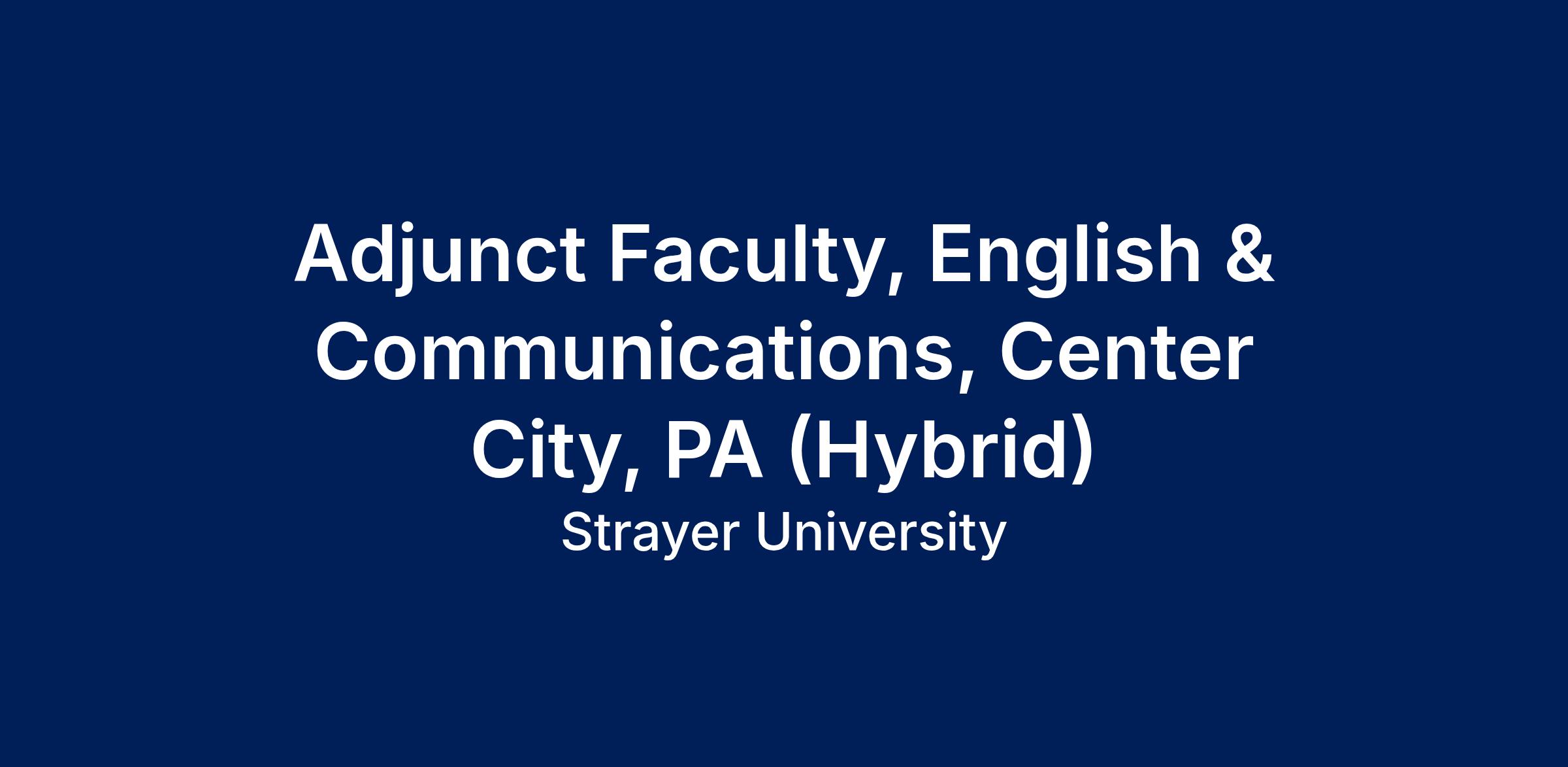 Strayer University is seeking a dynamic Adjunct Faculty member to join our academics team. We are currently in search of a passionate professor for undergraduate level English and Communications classes for the upcoming Spring 2026 quarter, starting April 6, 2026 in a hybrid format. The hybrid format is described as teaching the course in both the in-person and online modalities. This role requires 11 in-person meeting sessions for 2 hours every week held at a predetermined scheduled time (day/evening) at a specific Strayer University Campus. The balance of the course is instructed asynchronously online.