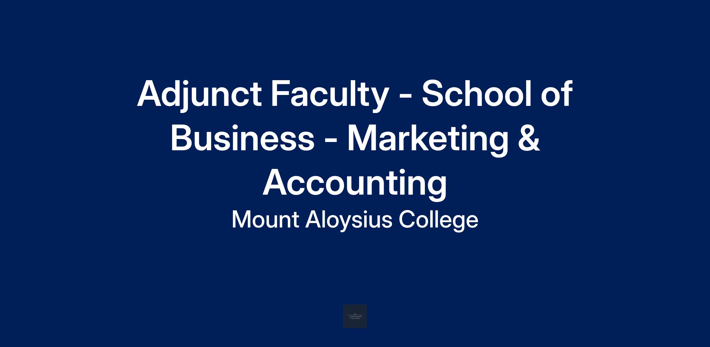 Mount Aloysius College, repeatedly recognized by ModernThink as a “Great College to Work For,” seeks qualified candidates to teach undergraduate coursework in our ACBSP-Accredited Business Program on an adjunct basis during the upcoming Spring 2026 semester. Adjunct Faculty are needed with specializations in teaching Marketing and Accounting.