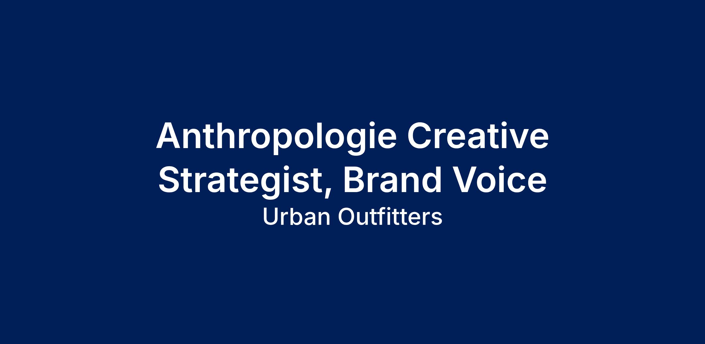 Anthropologie is seeking a Creative Strategist to join the Brand Voice team. This net new role is central to evolving the role of copy and narrative from execution into concept and creative strategy.