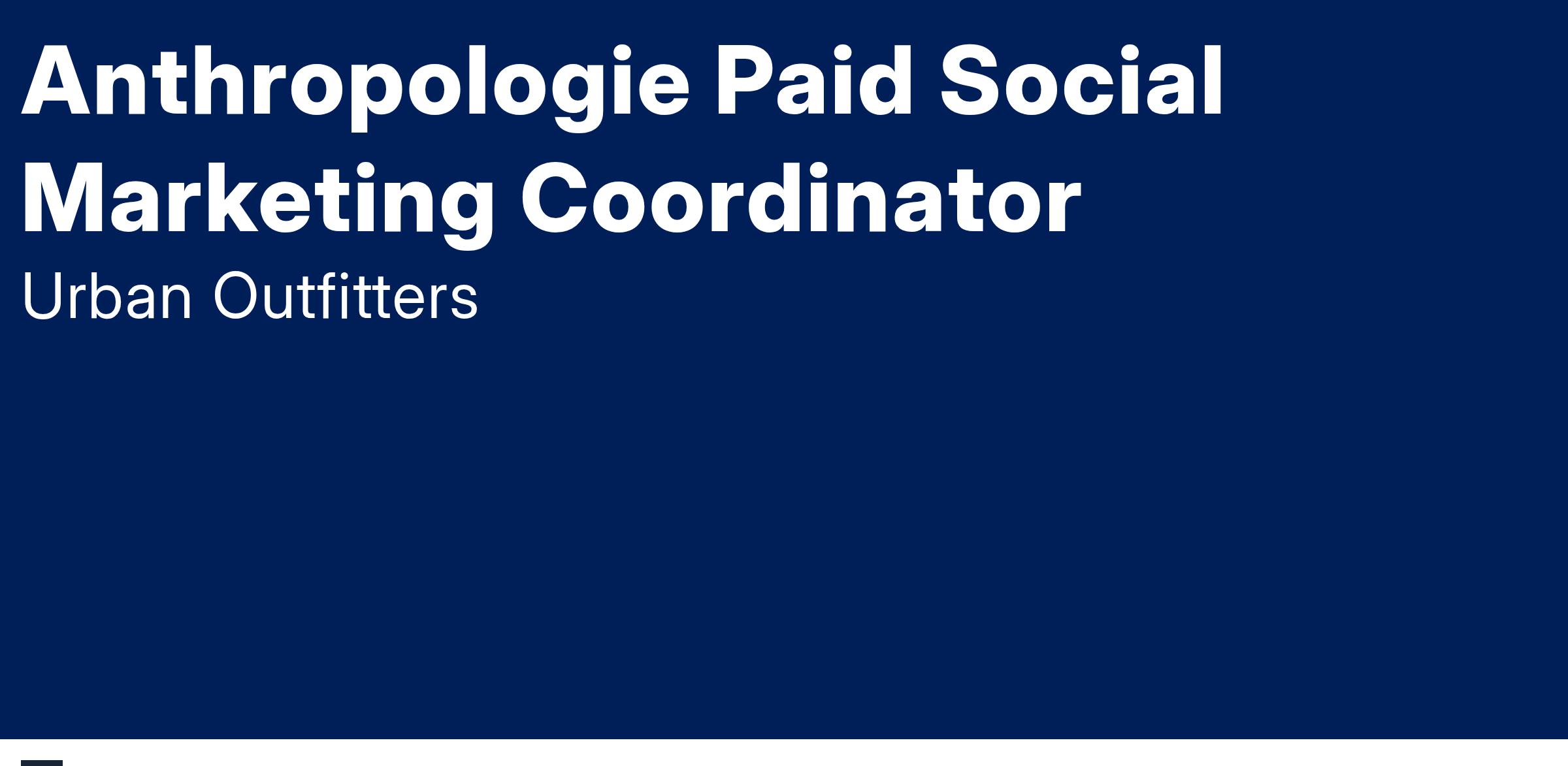 In this role collaboration and clear communications are key. It is critical that you are curious, a self-starter, and a willing teammate who takes pride in ownership of this important program. The ideal candidate has serious analytical chops and strong work ethic with a drive to provide growth for the business. It's important to possess an eagerness to innovate, measure, test, sometimes fail, learn, and evolve to implement improved strategy for Anthropologie Group campaigns across Paid Social media.