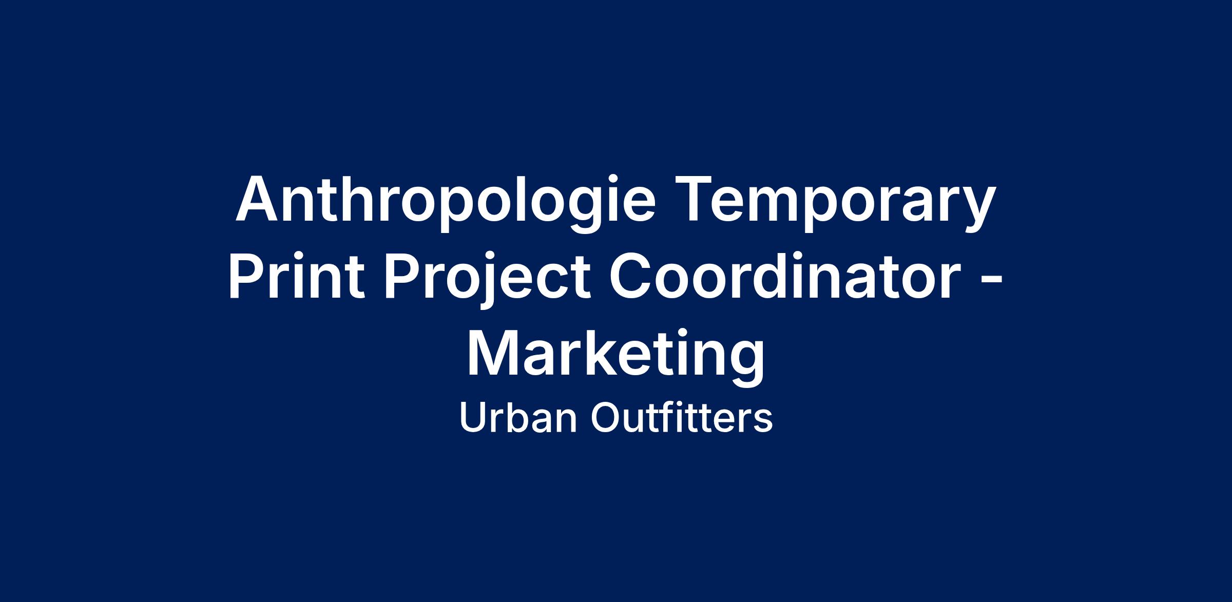 Anthropologie is looking for a Temporary Print Project Coordinator - Marketing. The Print Project Coordinator will report into the Art Department Project Manager and be responsible for supporting the asset creation of print collateral for Anthropologie Group events, in-store signage, influencer giftings, and brand activations. This is an operational role that will support day-to-day operational needs to ensure efficient workflow and effective processes of the creative print team.