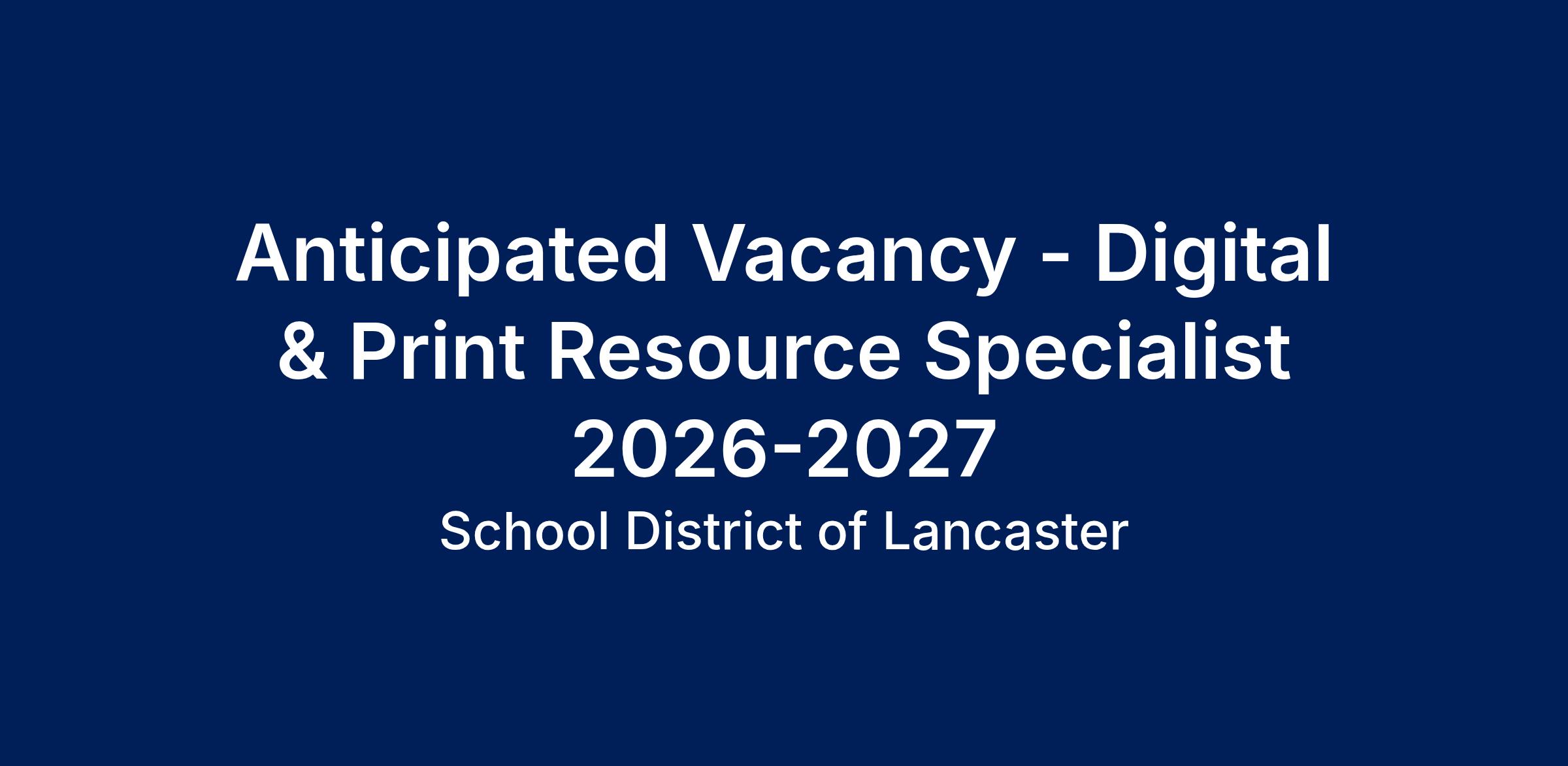 This is an ongoing posting for an anticipated vacancy for the 2026-2027 school year. As we work through the budget process and review vacancies, there may be a brief delay before our team reaches out to schedule interviews.