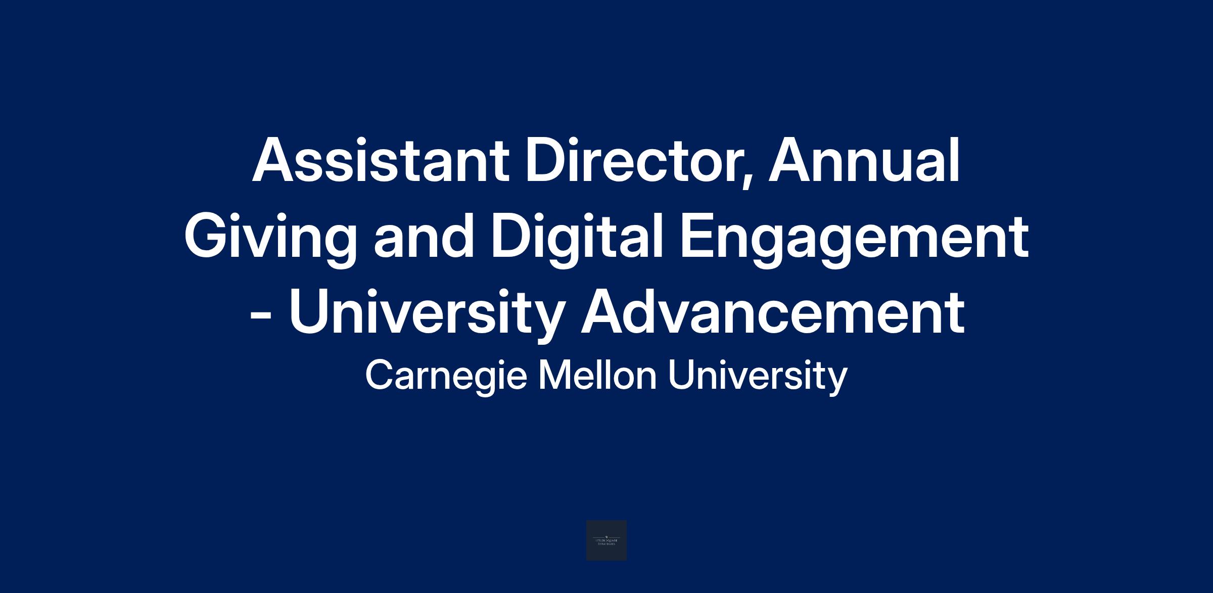 Carnegie Mellon is enjoying the most productive fundraising years in its history, raising more than $950M over the last three years. University Advancement (UA) supports the entire CMU community in building relationships with key constituencies and securing the financial resources the university needs to continue its ascent. As the division grows, we are seeking an Assistant Director, Annual Giving and Digital Engagement to join the team. This is an exciting opportunity if you thrive in an interesting and challenging work environment.