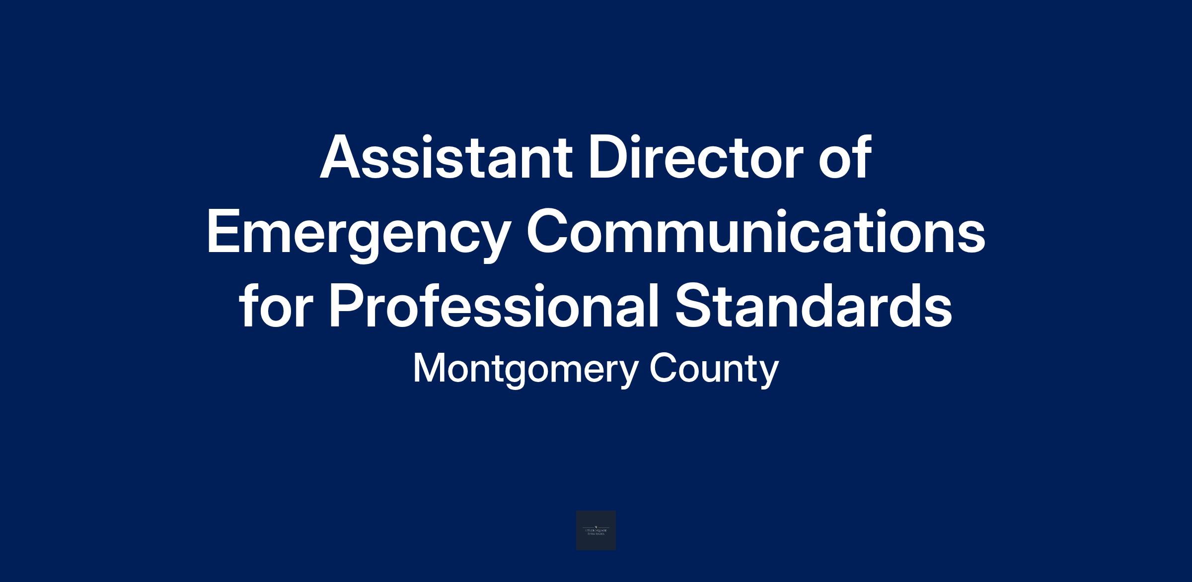 The Assistant Director of Emergency Communications for Professional Standards provides hiring, training and accreditation oversight of the Emergency Communications Division. This includes, but is not limited to hiring, training and accreditation oversight of the Emergency Communications Division. Responsibilities include the hiring, training and continued education of telecommunicators and other division personnel, maintaining accreditation and the on-going maintenance of files and documentation for re-accreditation The position will also oversee the unemployment process.