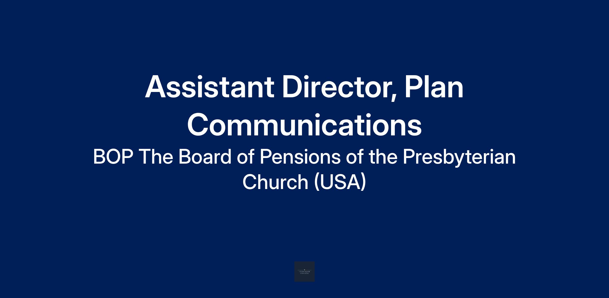 The role: The Assistant Director, Plan Communications, is a strategic and detail-oriented communicator that leads the planning and execution of benefit and plan-related communications. This role plays a critical part in shaping messaging, managing communication initiatives, and ensuring clarity and consistency across all plan-related content. What you will do: Develop and execute communication plans that enhance understanding of Board of Pensions plans, programs, and initiatives by members and employers. Write, edit, and oversee the development of clear, accurate, and engaging content across multiple platforms, including websites, email, print collateral, and presentations. Review and refine communications created by others to ensure consistency with messaging, tone, and brand standards. Partner with internal departments to align messaging with organizational goals and compliance requirements. Allocate internal and external resources effectively, including managing timelines and relationships with outside vendors and partners. What you need to succeed: Bachelor's degree in liberal arts, journalism, English, or related fields. 15 years of related experience, including 5 years of management experience. An ability to lead, motivate, and develop staff. Deep understanding of benefits communications and communicating to various audiences. Demonstrated ability to think strategically and plan and execute multiple, complex projects simultaneously with excellent attention to detail. Strong writing and editing skills with the ability to review the work of others critically and with a strong attention to detail. Ability to work across teams and functions to drive consensus, action, and results-based work. Superior communication and relationship building skills to support interactions with colleagues, senior management, vendors, and members of the Board of Directors. Exceptional relationship building and negotiation skills. Ability to adapt to changing priorities, meet deadlines, and adjust priorities. An ability, interest and desire to stay current via seminars, industry literature, and formal training and development. We offer a generous benefits package for eligible employees. Medical, dental, and vision coverage. Defined benefit pension plan. 403(b)(9) retirement savings plan. Generous paid time off, including sick time, holidays, and 22 days of personal leave. Tuition assistance. Employee Assistance Plan and other health and well-being resources. Employer-paid death benefits with opportunities to purchase additional coverage. Employer-paid Short-Term and Long-Term disability coverage. Access to the Board’s education and grant assistance programs. Discount programs on entertainment, travel, and more. Satisfaction gained from working for a service-oriented employer. Volunteer and other service opportunities in the community at large. Our recruiting process is simple. If you’re interested in a role at the Board of Pensions, apply online at pensions.org. If your skills match an open position, one of our recruiters will set up a phone or Microsoft Teams interview to discuss your interests, background, and skills. They’ll also answer any questions you might have. If you are selected to continue with the recruitment process, you will meet the hiring manager and other relevant team members. To protect the health of our staff, we encourage everyone to receive FDA-approved vaccinations that may reduce the spread of certain infectious diseases, such as the flu and COVID-19. We are an Equal Opportunity Employer. The Board of Pensions of the Presbyterian Church (U.S.A.) is proud to be an equal opportunity employer We value diversity, equity, and inclusion and do not discriminate based on race; color; sex; national origin; age; pregnancy, childbirth, or a related medical condition; military/veteran status; marital/domestic partner status; physical or mental disability; medical condition; religion or religious affiliation, except where determined to be a bona fide occupational qualification; sexual orientation; gender; gender identity or expression; genetic information; ancestry; or any other category protected by applicable federal, state, or local law. We’re the Board of Pensions, an agency of the Presbyterian Church (U.S.A.) that takes pride in offering a robust range of benefits and services to PC(USA) churches, agencies, mid councils, and affiliated employers — including educational institutions, camps, conference centers, retirement and senior housing communities, and human services organizations. As a nonprofit defined by faith, we are committed to mutual care and wholeness for all who serve church and affiliated employers — including those servants at the Board of Pensions, who work to carry out our mission. If you share our values and want to join an organization that is making intentional strides on its diversity, equity, and inclusion journey, and has been recognized regionally as one of the area’s healthiest and best places to work, consider joining our culture and tradition of service.