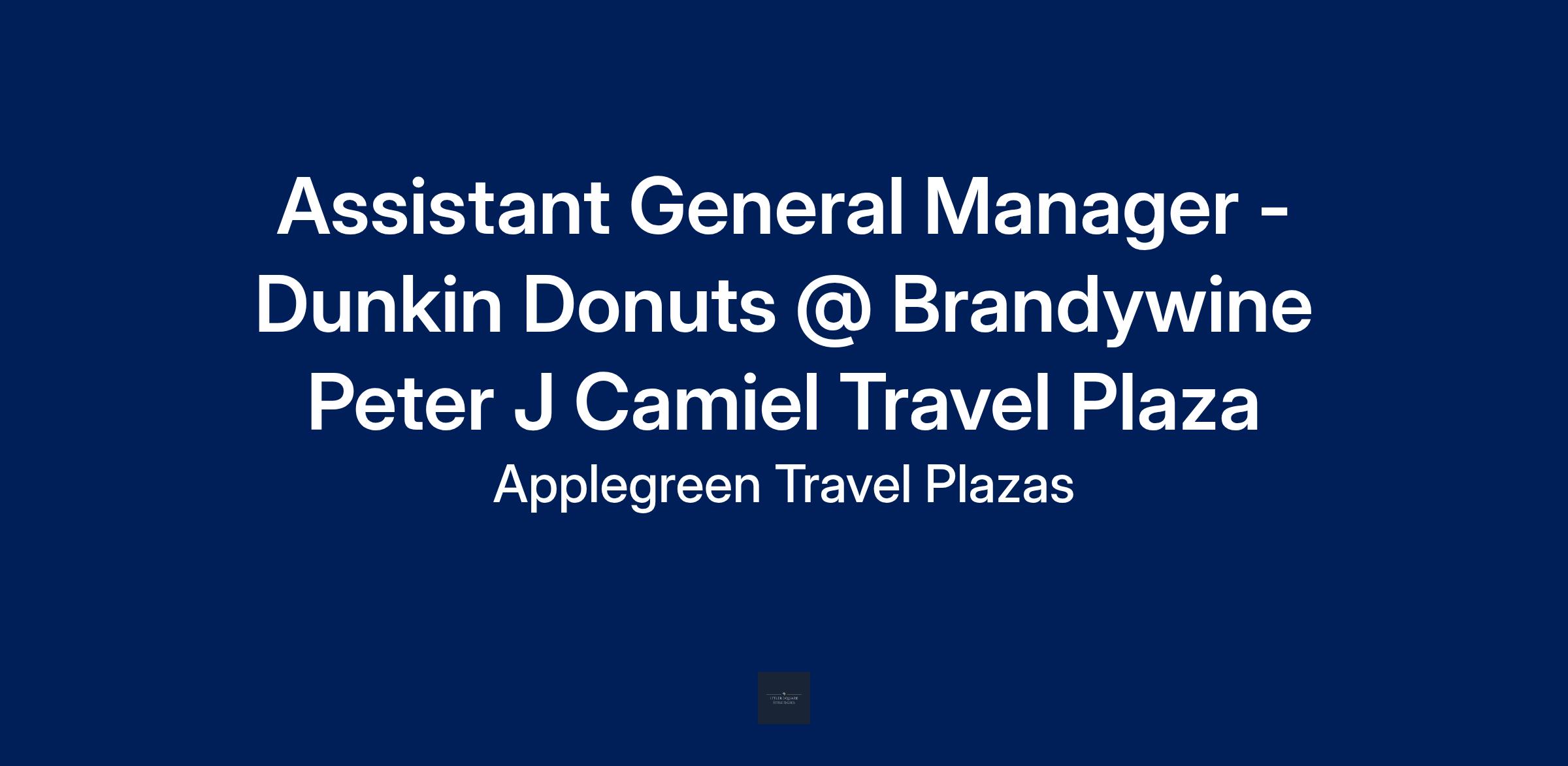 Assistant General Manager - Dunkin Donuts @ Brandywine Peter J Camiel Travel Plaza