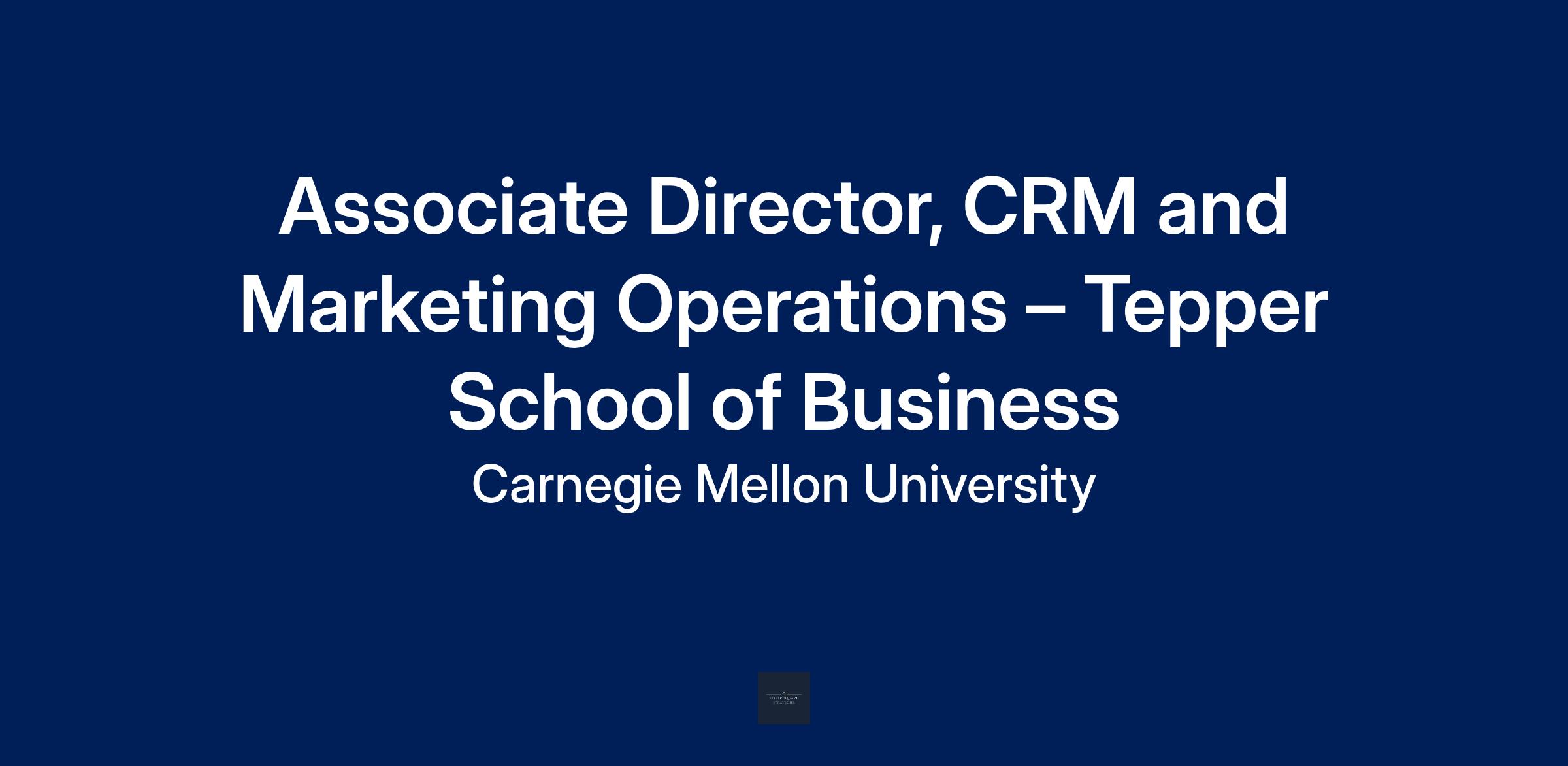The Tepper School of Business at Carnegie Mellon University is seeking a tech-savvy, collaborative, and solutions-oriented CRM and Marketing Operations Associate Director to support their graduate efforts. This role serves as a point of contact for marketing operations within the Slate CRM system used across graduate programs, helping to implement, optimize, and maintain marketing strategies and email campaign workflows.