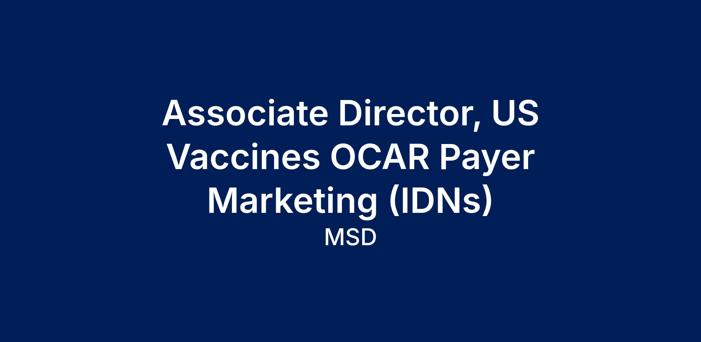 As a member of the US Vaccines Organized Customer Access & Reimbursement (OCAR) team, the Associate Director, U.S. Vaccines Payer Marketing will have a deep understanding of the IDN customer segment and will develop strategies that maximize appropriate patient access and pull through of vaccines in the IDN setting.