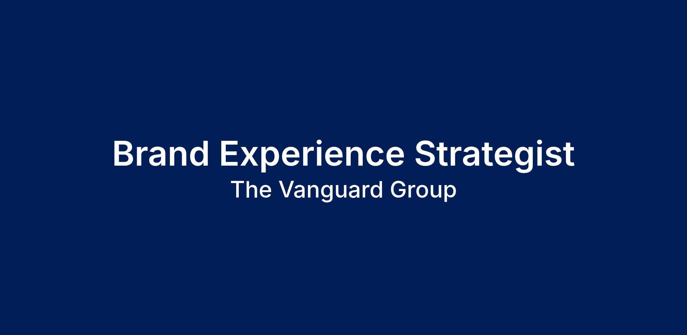 Vanguard’s Global Brand team is responsible for defining and telling Vanguard’s story in ways that set us apart and inspire action. We’re currently look for a Brand Experience Strategist to join the Brand Strategy & Insights team. This person will design and deliver experiences, programs, and partnerships that help Crew deepen strategic thinking, strengthen marketing effectiveness, and extend our enterprise brand strategy into their work.