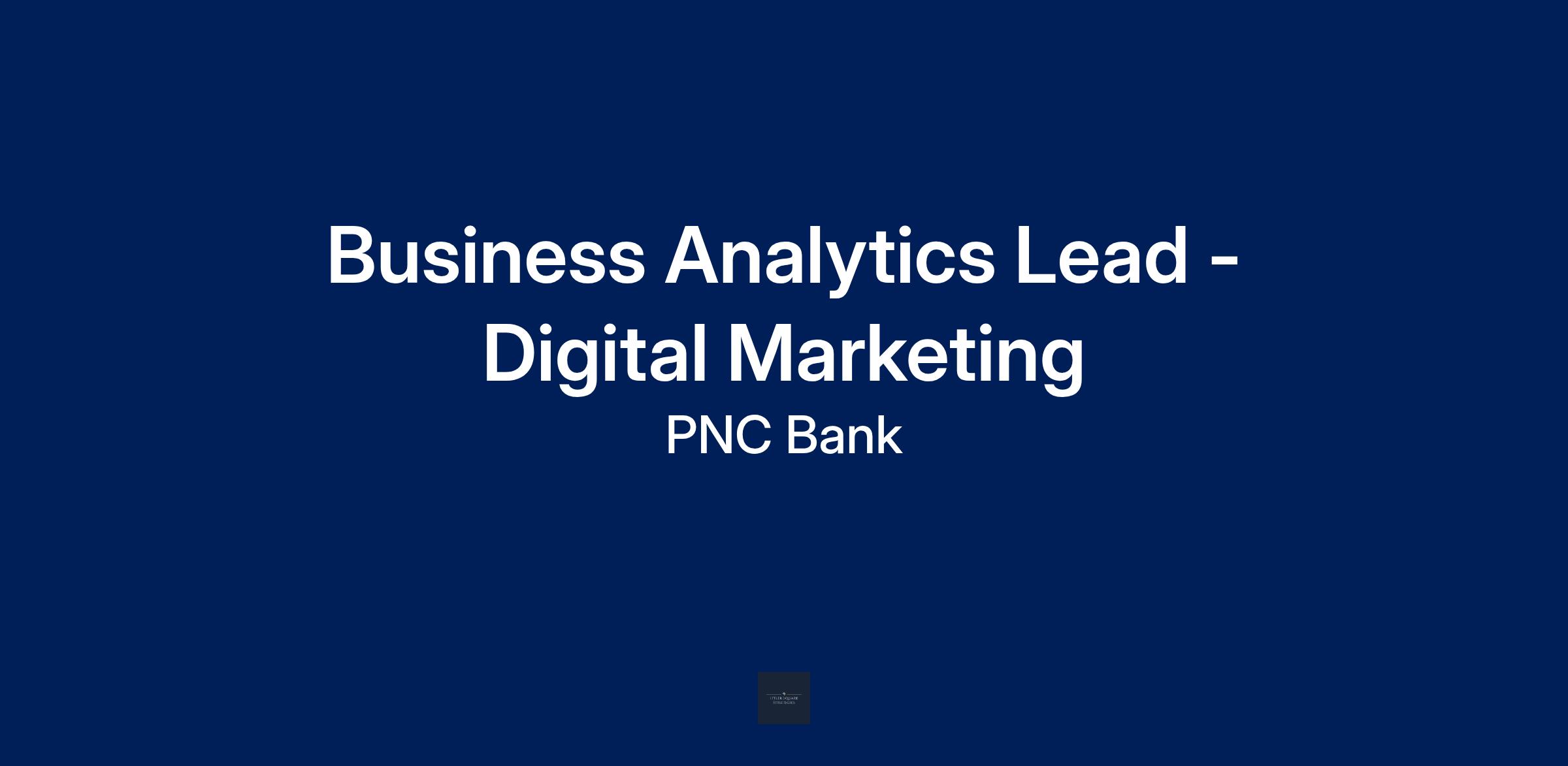 At PNC, our people are our greatest differentiator and competitive advantage in the markets we serve. We are all united in delivering the best experience for our customers. We work together each day to foster an inclusive workplace culture where all of our employees feel respected, valued and have an opportunity to contribute to the company’s success. As a Business Analytics Lead within PNC's Digital Marketing organization, you will be based in Pittsburgh, PA or Cleveland, OH.
