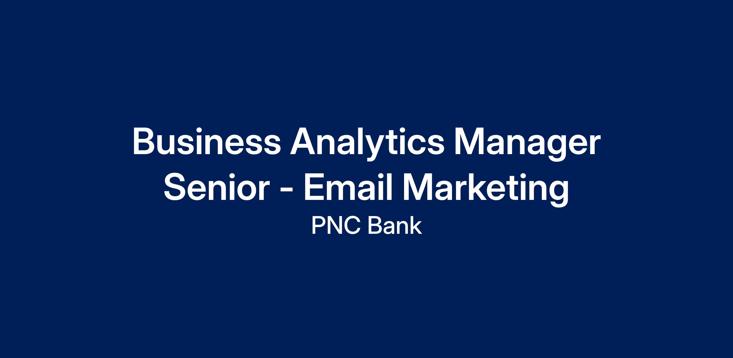 At PNC, our people are our greatest differentiator and competitive advantage in the markets we serve. We are all united in delivering the best experience for our customers. We work together each day to foster an inclusive workplace culture where all of our employees feel respected, valued and have an opportunity to contribute to the company’s success. As a Business Analytics Manager Senior within PNC's MarCom organization, you will be based in Pittsburgh, PA; Cleveland, OH; or Philadelphia, PA.