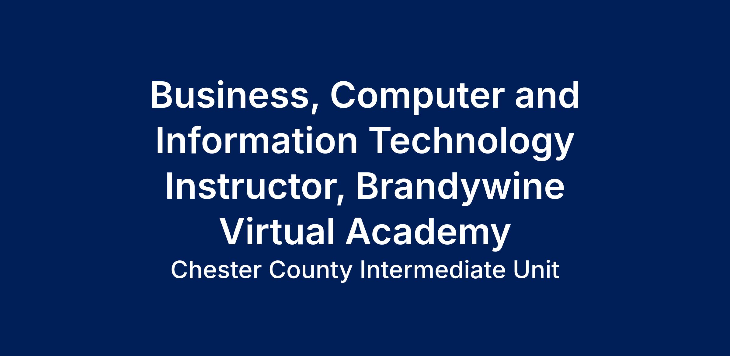 A vacancy exists for a Business, Computer and Information Technology Instructor within the Brandywine Virtual Academy Division at the Chester County Intermediate Unit in Downingtown, PA starting for the 2026-27 school year.