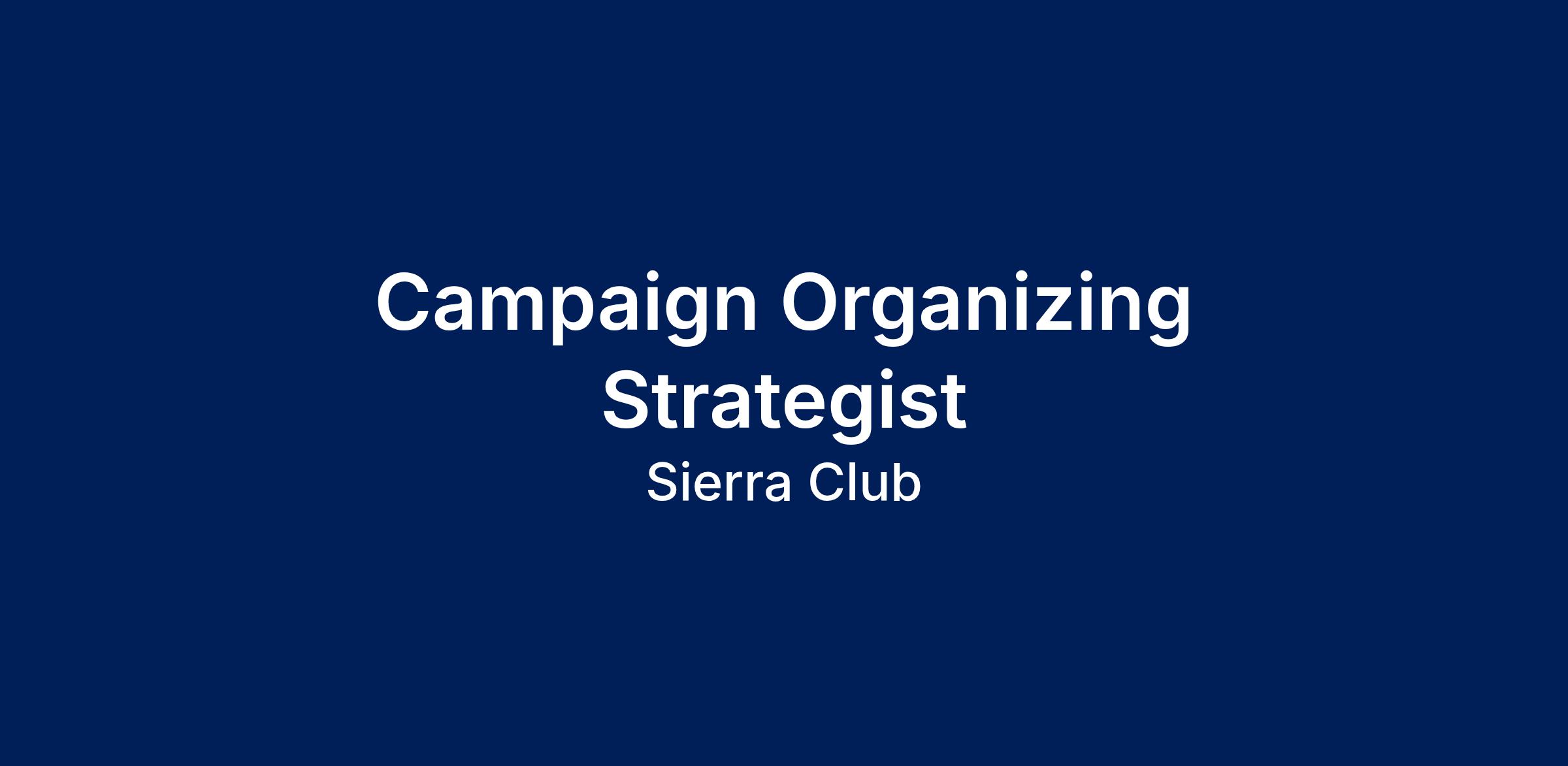 Scope: The Campaign Organizing Strategist is responsible for designing the campaign organizing component of strategic planning in collaboration with the manager and Chapter Director. The Campaign Organizing Strategist supports the planning and coordination of campaigns which win real victories and build the grassroots power to accomplish Sierra Club priorities, which are: to address climate disruption, transform the energy economy, protect communities from pollution, ensure access to the outdoors for all and protect our lands, water and wildlife. The Chapter(s) is a crucial partner for the Campaign Organizing Strategist to successfully carry out strategic plans.