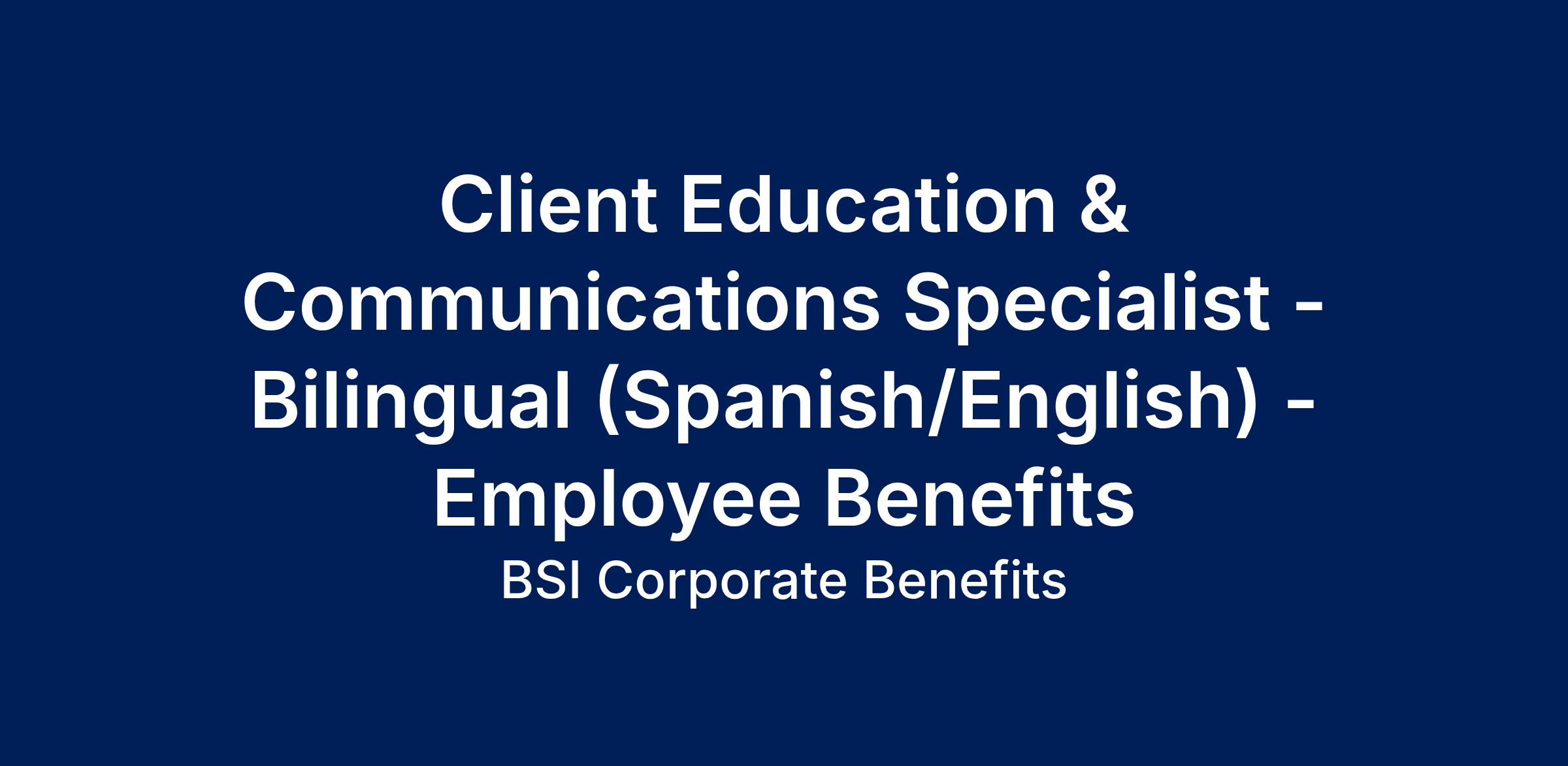 At BSI, client education is at the heart of delivering an exceptional benefits experience. As the Client Education & Communications Specialist, you will play a critical role in ensuring Spanish-speaking employees and clients fully understand and engage with their benefits.