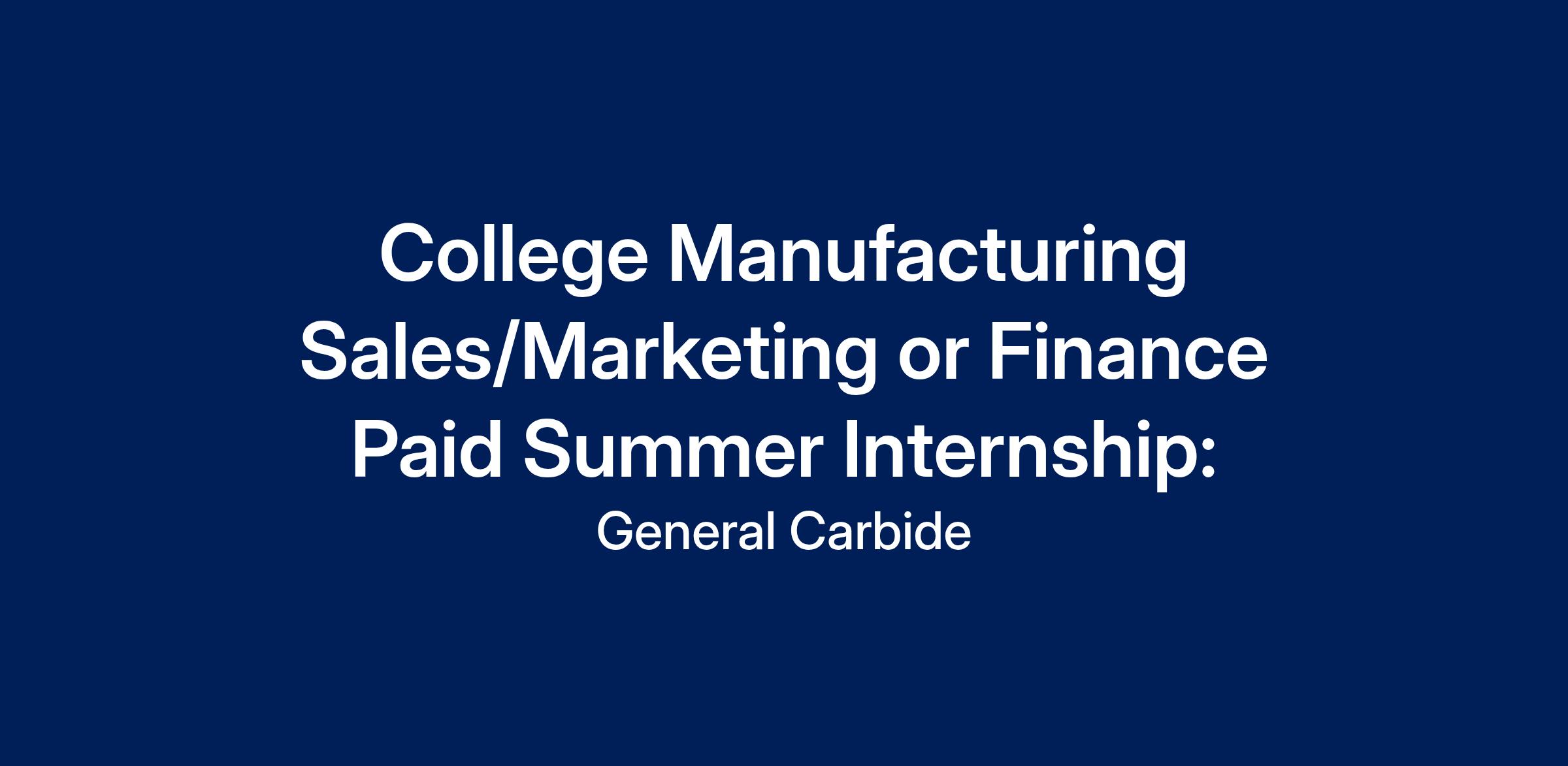 General Carbide is seeking motivated, college-aged Sales/Marketing or Finance Summer Interns to join our team through the General Carbide Innovation Internship Competition. This is a paid, hands-on summer internship designed for students who want real-world experience in a fast-paced manufacturing setting. Interns will contribute to meaningful projects that support sales, marketing, and/or finance initiatives while working closely with experienced manufacturing professionals.