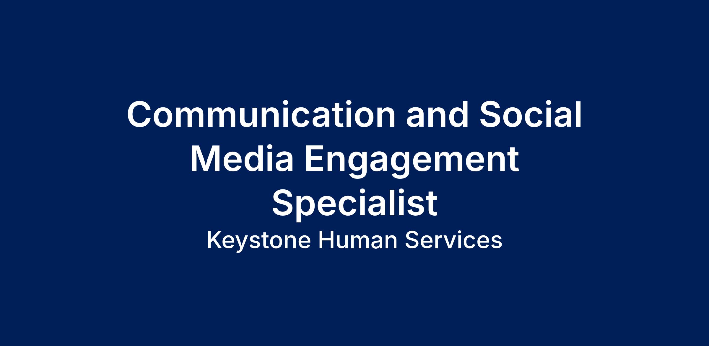 Keystone Human Services is currently seeking a full-time Communications and Social Media Engagement Specialist to join our team of professionals in making a positive difference in the lives of our neighbors and the community.