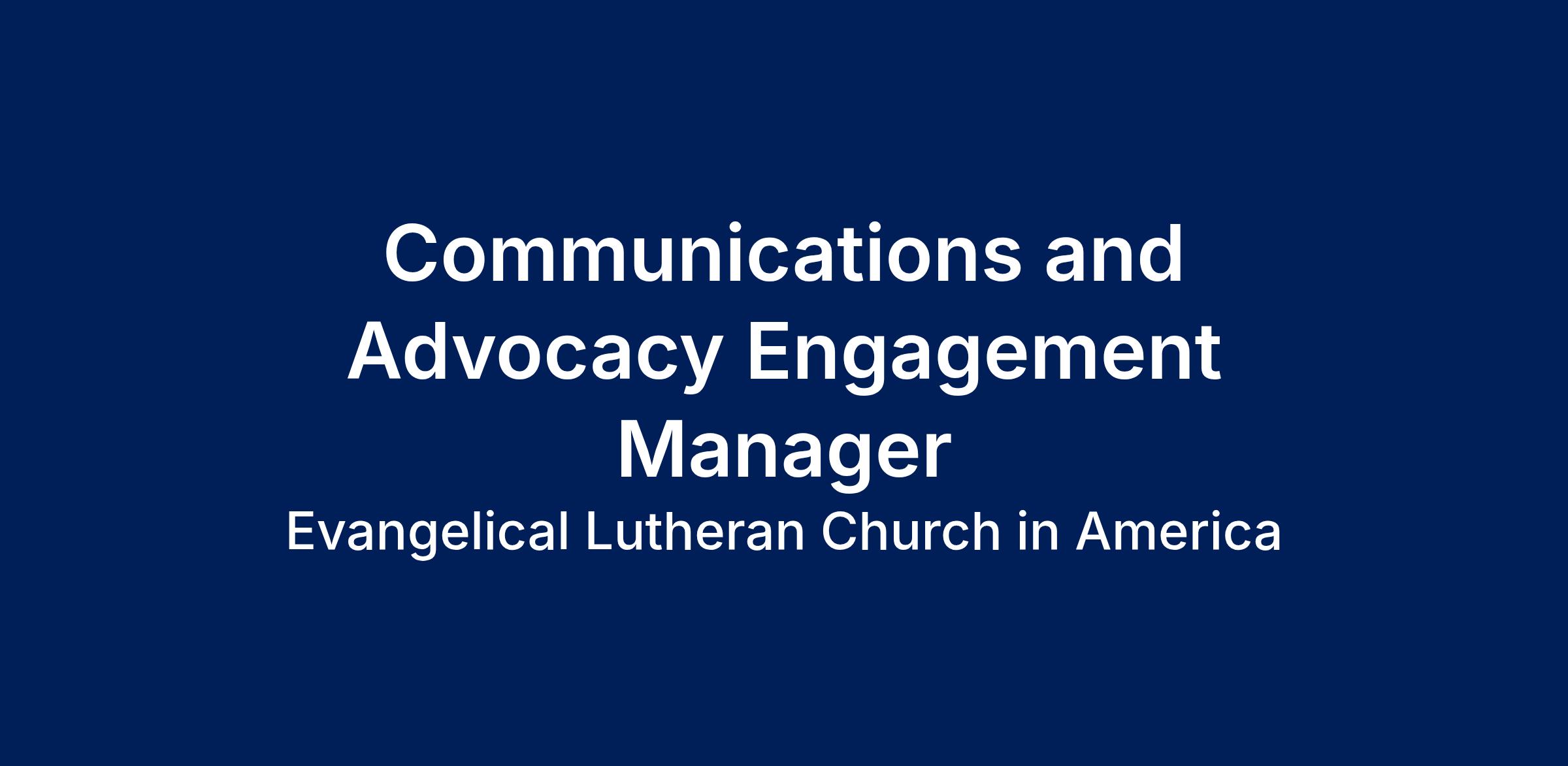 This position will create, implement, and manager communications strategies for supporting productive relationships with internal and external partners as well as effective advocacy with policymakers. This position will equip Lutherans for public witness and advocacy campaigns that include voices from and encourage accompaniment of communities and individuals who are most affected by public policies, yet often neglected in policy formation.