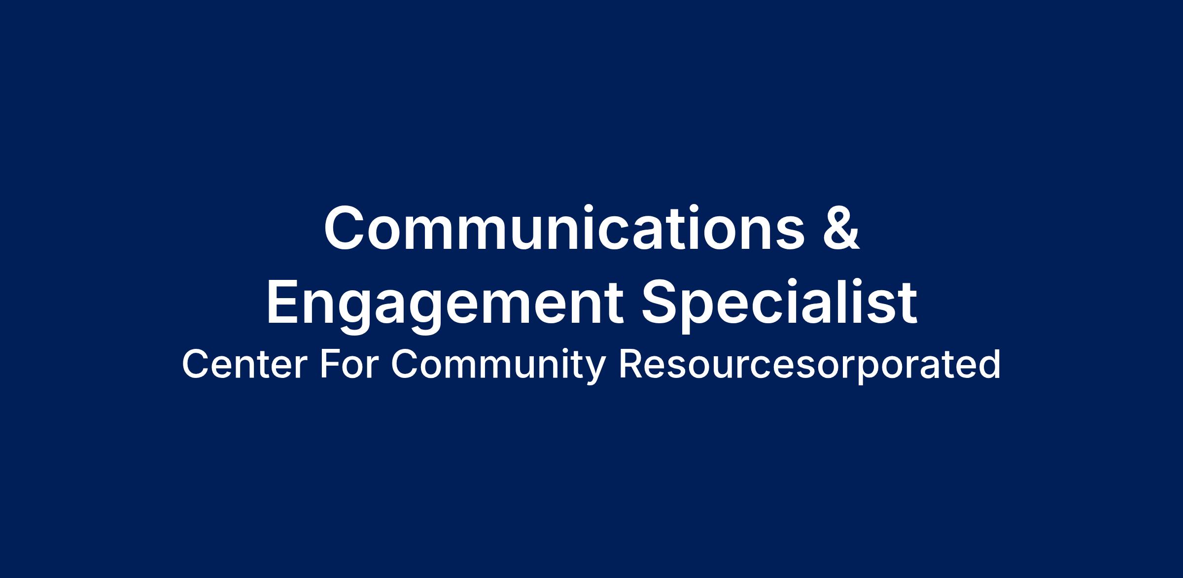 The Center for Community Resources is seeking a Communications & Engagement Specialist to support the development of the agency’s marketing, communications, and community engagement efforts. This role works collaboratively to share information about services with the community, partner organizations, and provider networks while building and maintaining strong relationships with agencies and foundations. The position also supports event management, public relations initiatives, outreach, and project coordination to promote effective engagement.