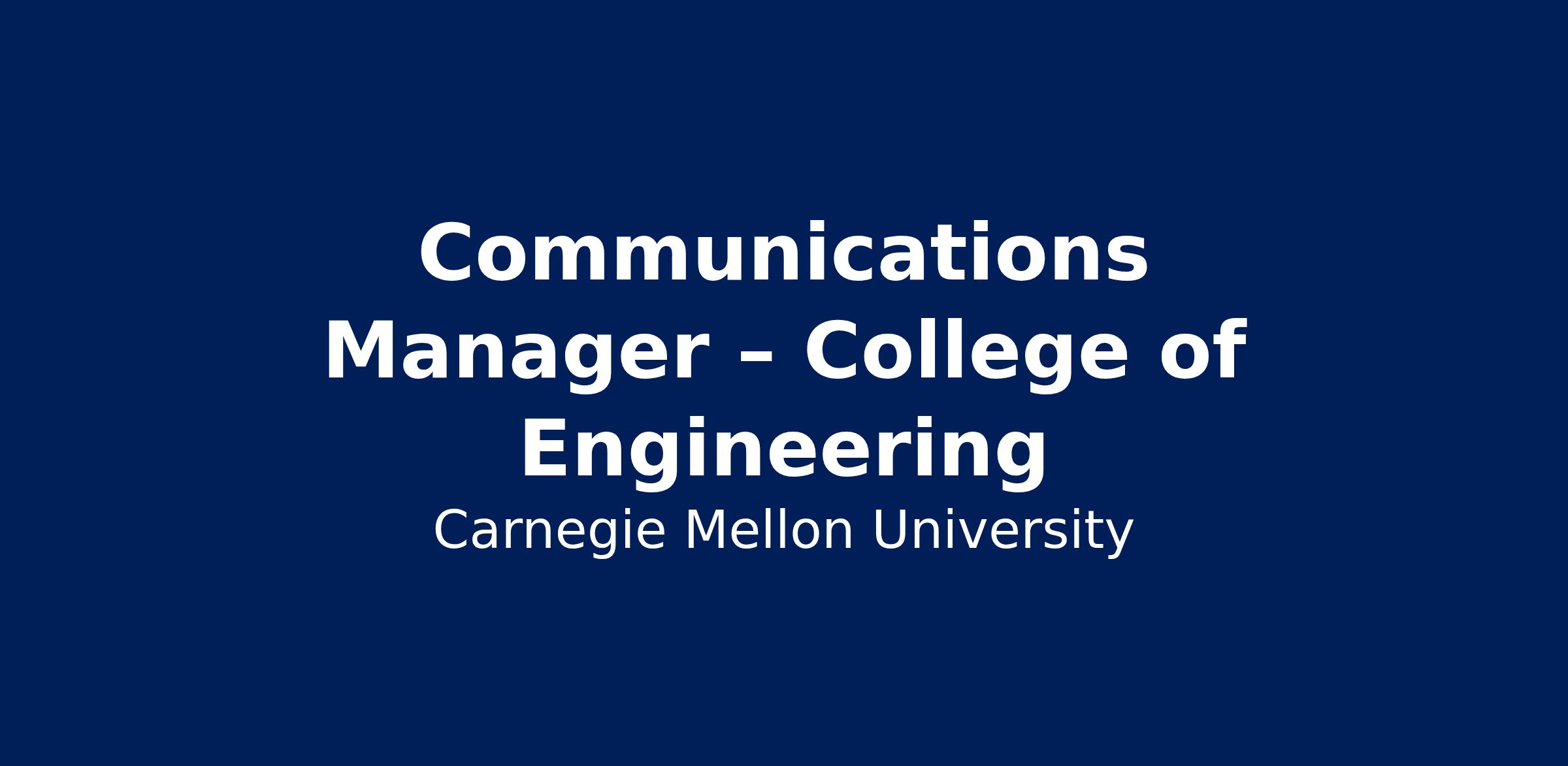 Carnegie Mellon University is looking for a Communications Manager to join our team. This is an exciting opportunity for someone who thrives in an interesting and challenging work environment, managing the communication needs within the College of Engineering.