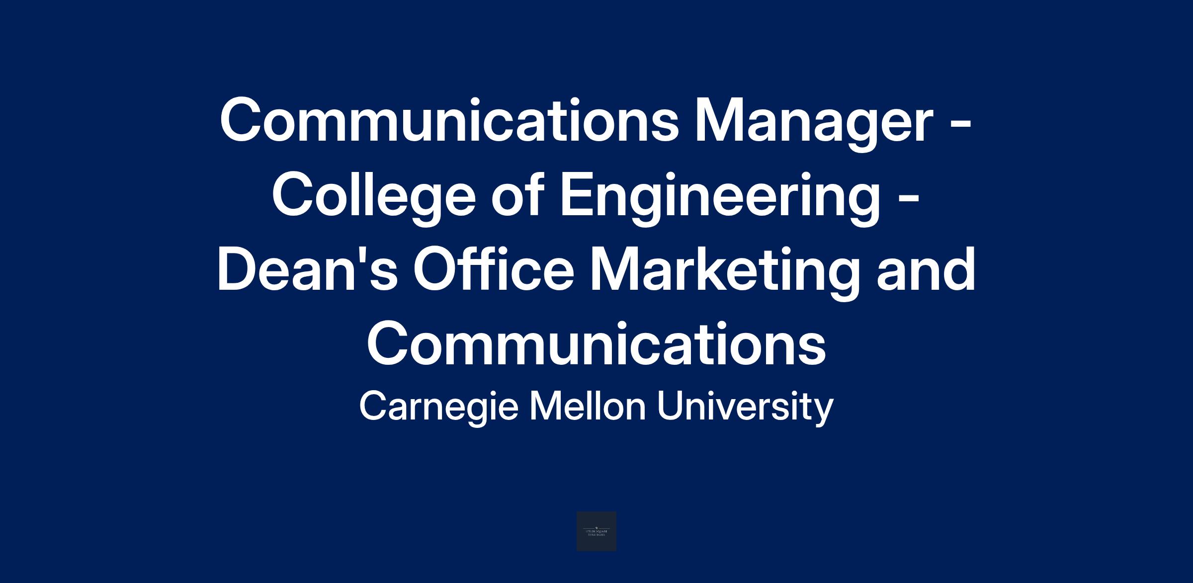 Carnegie Mellon University's College of Engineering is searching for a Communications Manager to join our team. This is an exciting opportunity for someone who thrives in an interesting and challenging work environment.