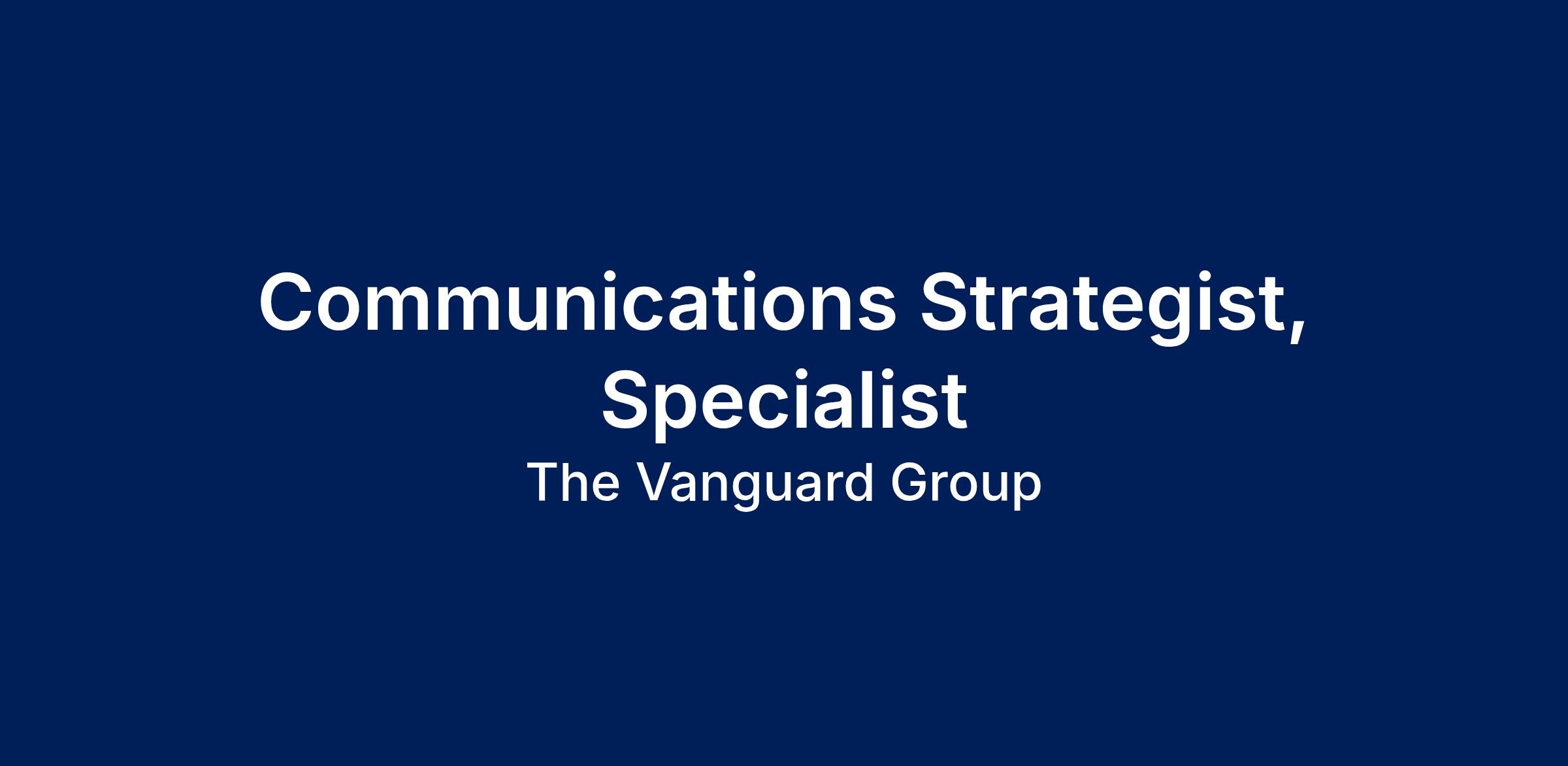 Vanguard has many great stories to tell—and we’re looking for a communications professional to help bring them to life. In this role, you will develop and execute communications strategies across a broad range of audiences and channels. You’ll serve as a trusted counselor to partners, translate complex topics into clear and compelling insights, and help strengthen Vanguard’s reputation as a company committed to giving investors the best chance for investment success. Come join our mission-driven team!