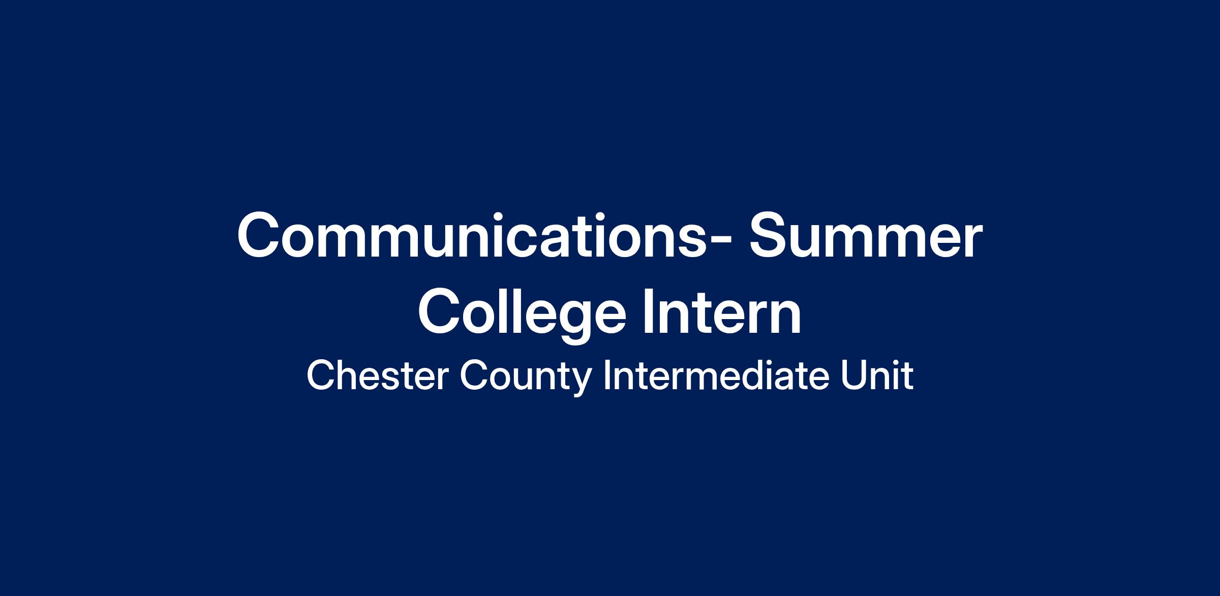 The Chester County Intermediate Unit (CCIU) has an opening for a Communications Intern within the Communications, Marketing and Community Engagment division. The position is available through the summer.