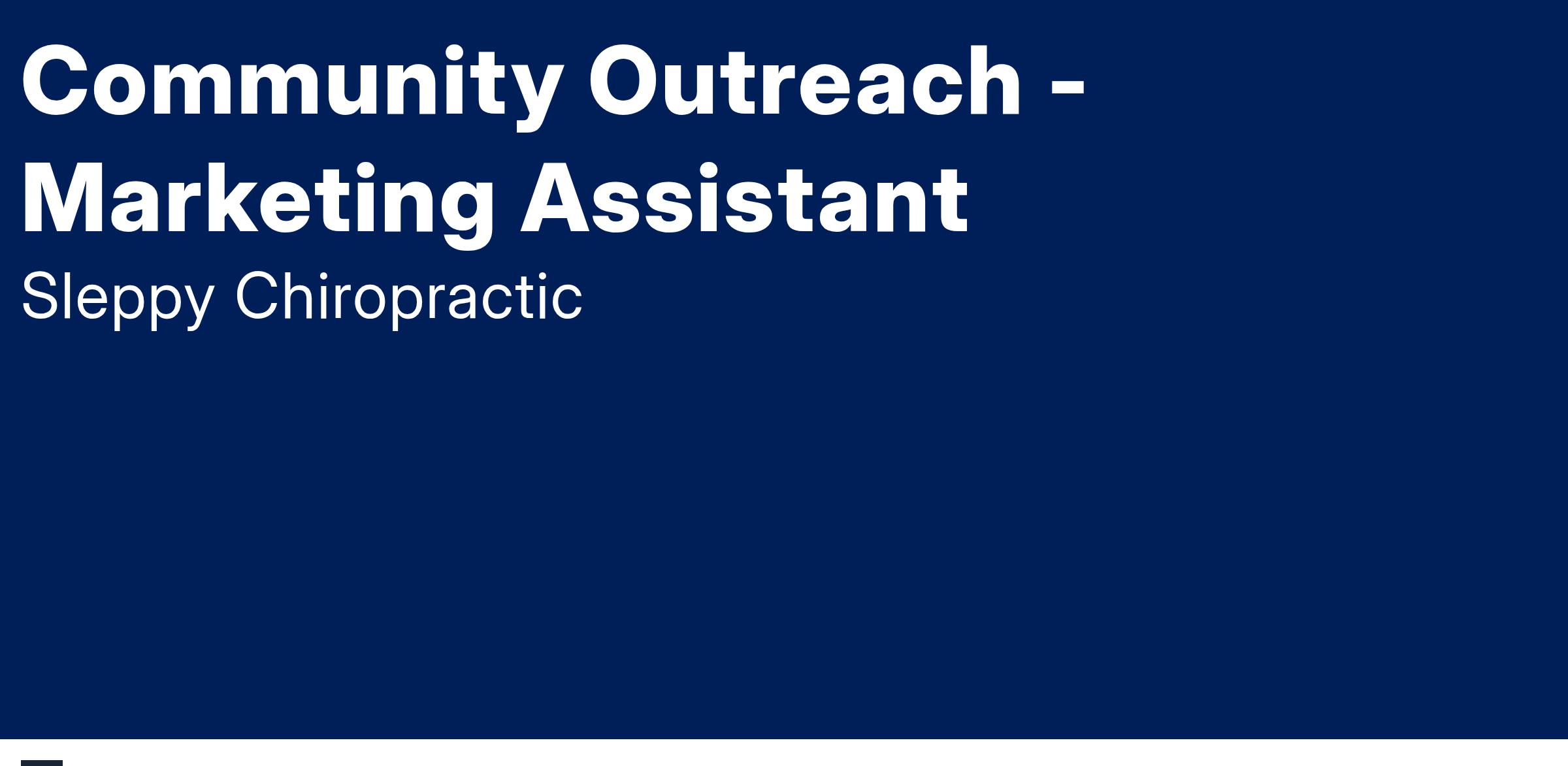 As a Community Outreach - Marketing Assistant, each day is filled with variety and opportunity to make a difference. You hit the ground running by reaching out to local businesses, schools, and community organizations to promote our wellness center. Whether you're attending community events, coordinating business partnerships, or providing top-notch customer service, your role is vital in spreading the word about Sleppy Chiropractic's services. You also help with marketing initiatives and have the chance to contribute to creative ideas and outreach strategies. Every day is about fostering relationships and impacting lives for the better.