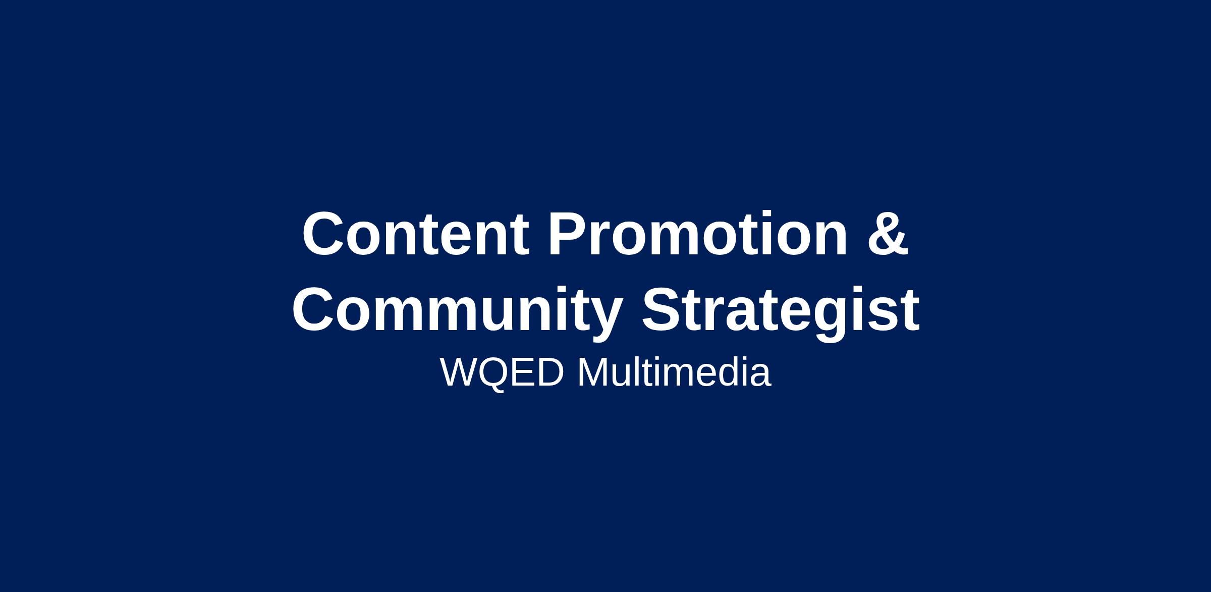 WQED is looking for a Content Promotion Strategist to serve as the voice of the viewer and turn great PBS programming into moments people discover, talk about, and show up for — online and in real life.