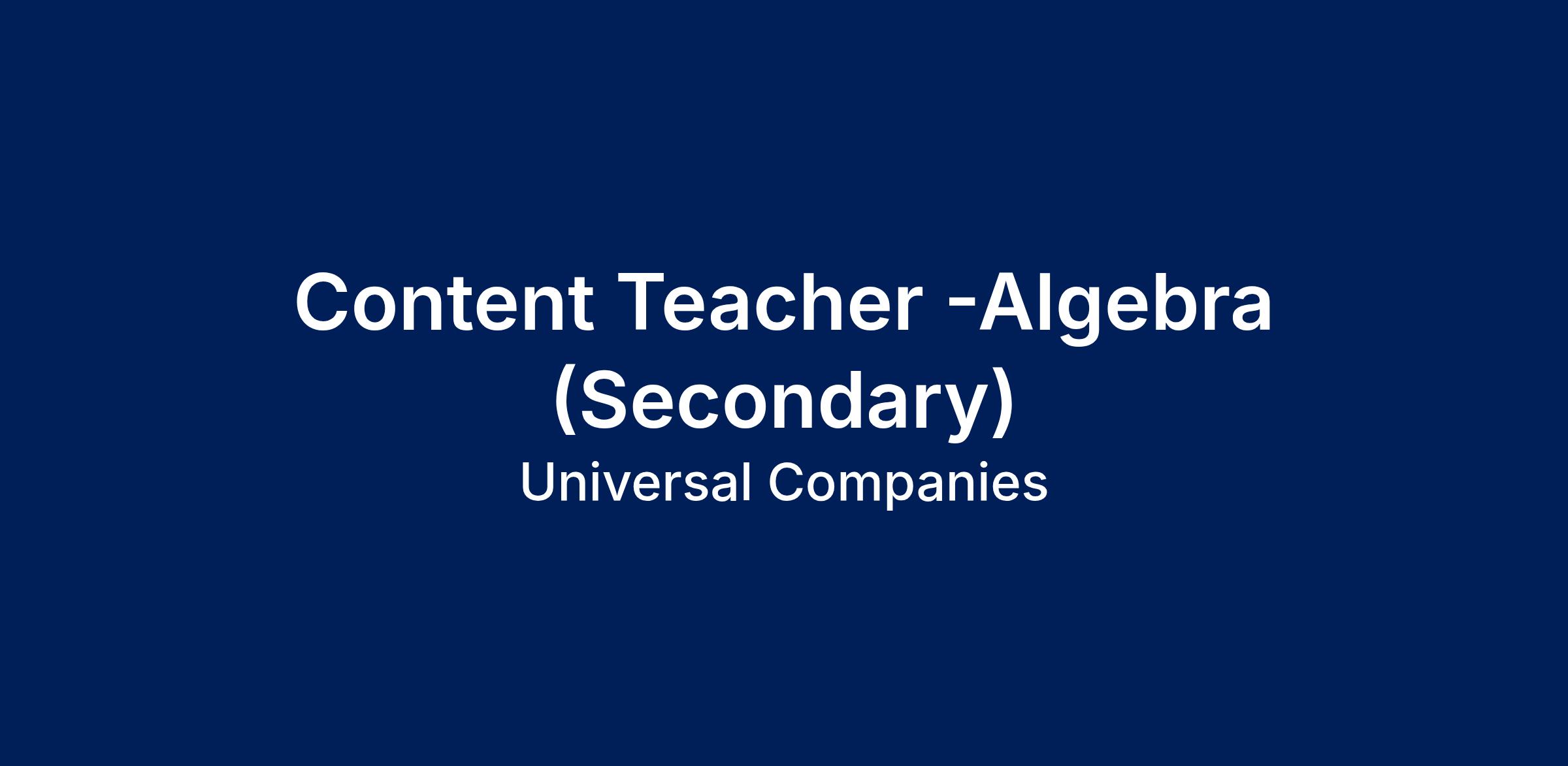Job Title: Content Teacher (Algebra) | Supervisor Job Title: Principal |