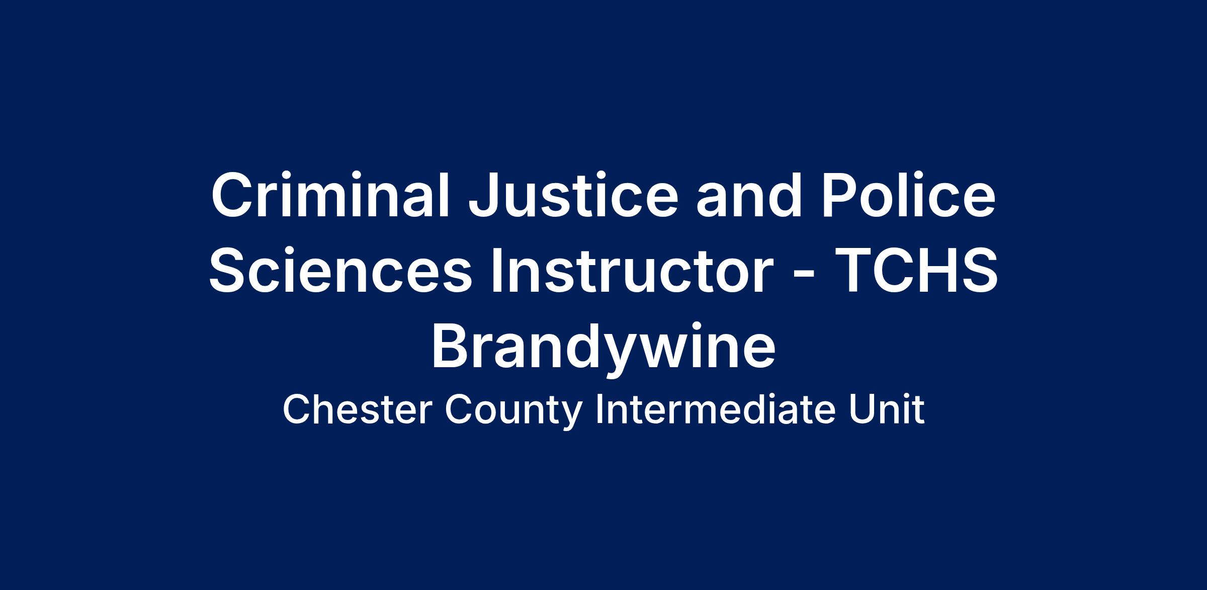 For the 2026-2027 school year, a vacancy for a Criminal Justice & Police Sciences Instructor position exists within the Division of Career, Technical and Customized Education of the Chester County Intermediate Unit. This position is located at TCHS Brandywine Campus in Downingtown, PA and the anticipated start date is August 11th, 2026.