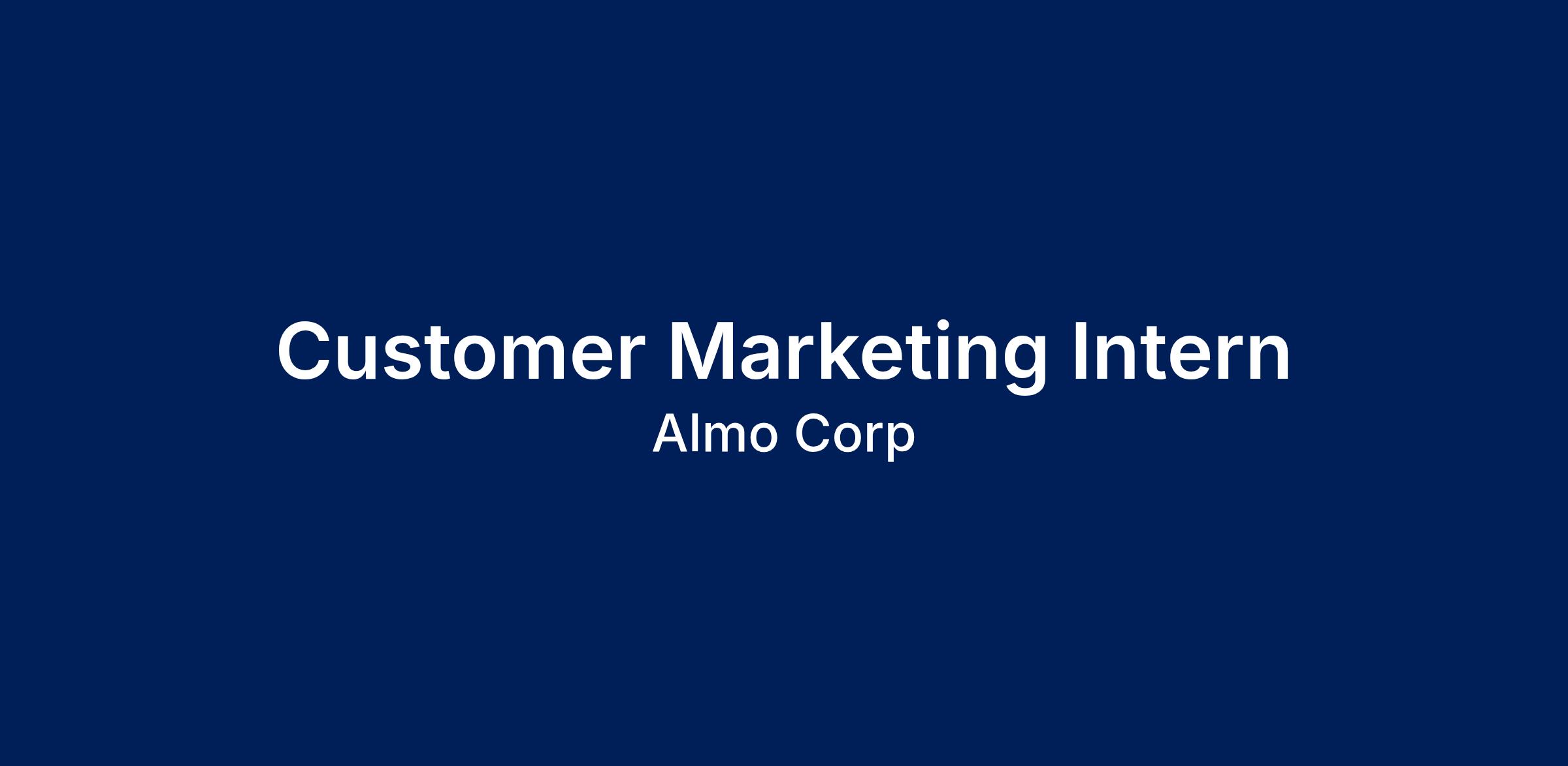 Internships at Almo Corporation offer students hands-on experience with a creative, fun, and hard-working team. Already the largest independent distributor of appliances, consumer electronics, professional A/V equipment, and furniture in the United States, Almo Corporation continues growing and needs motivated interns in all areas of our company. Almoβs summer intern program includes a meaningful summer project, a series of career training workshops, and contact with senior leaders.