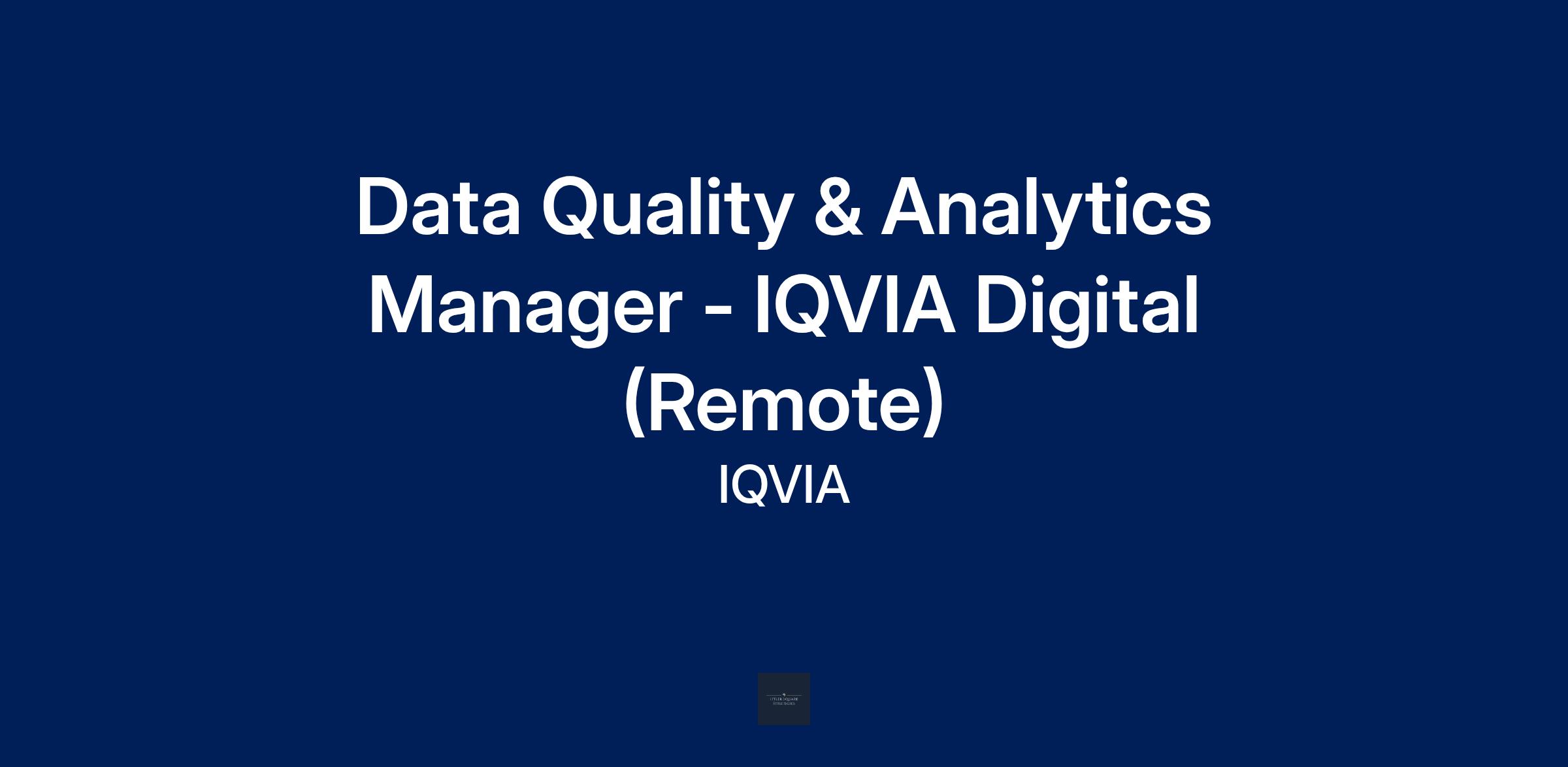 IQVIA is a leading global provider of clinical research services, commercial insights and healthcare intelligence to the life sciences and healthcare industries. We create intelligent connections to accelerate the development and commercialization of innovative medical treatments to help improve patient outcomes and population health worldwide. Learn more atΒ https://jobs.iqvia.com