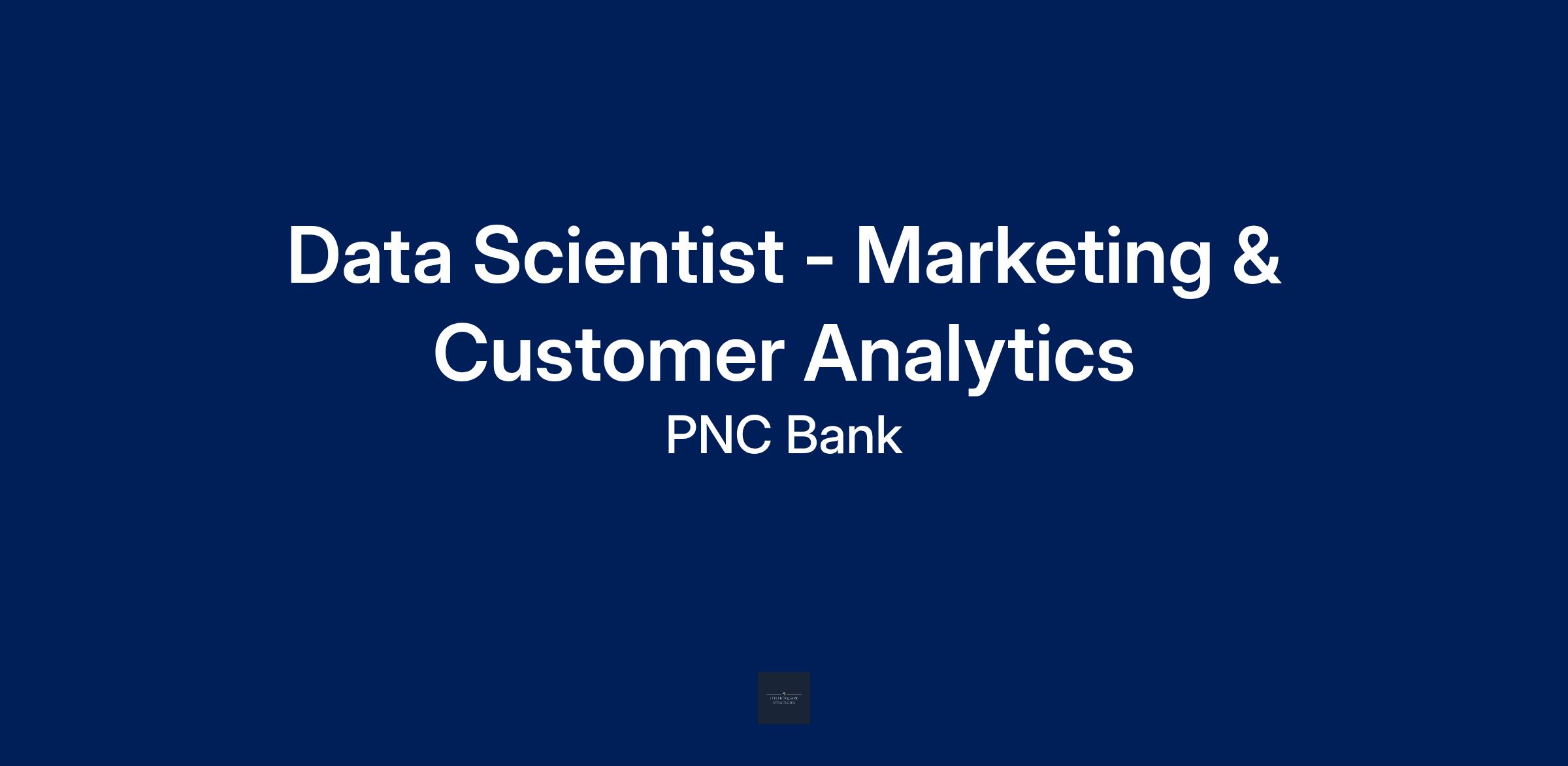 At PNC, our people are our greatest differentiator and competitive advantage in the markets we serve. We are all united in delivering the best experience for our customers. We work together each day to foster an inclusive workplace culture where all of our employees feel respected, valued and have an opportunity to contribute to the company’s success. As a Data Scientist within PNC's Balance Sheet Analytics & Modeling Marketing & Customer Analytics organization, you will be based in Pittsburgh, PA, Wilmington, DE or Tysons Corner, VA. This position is primarily based in a PNC location. Responsibilities require time in the office or in the field on a regular basis.