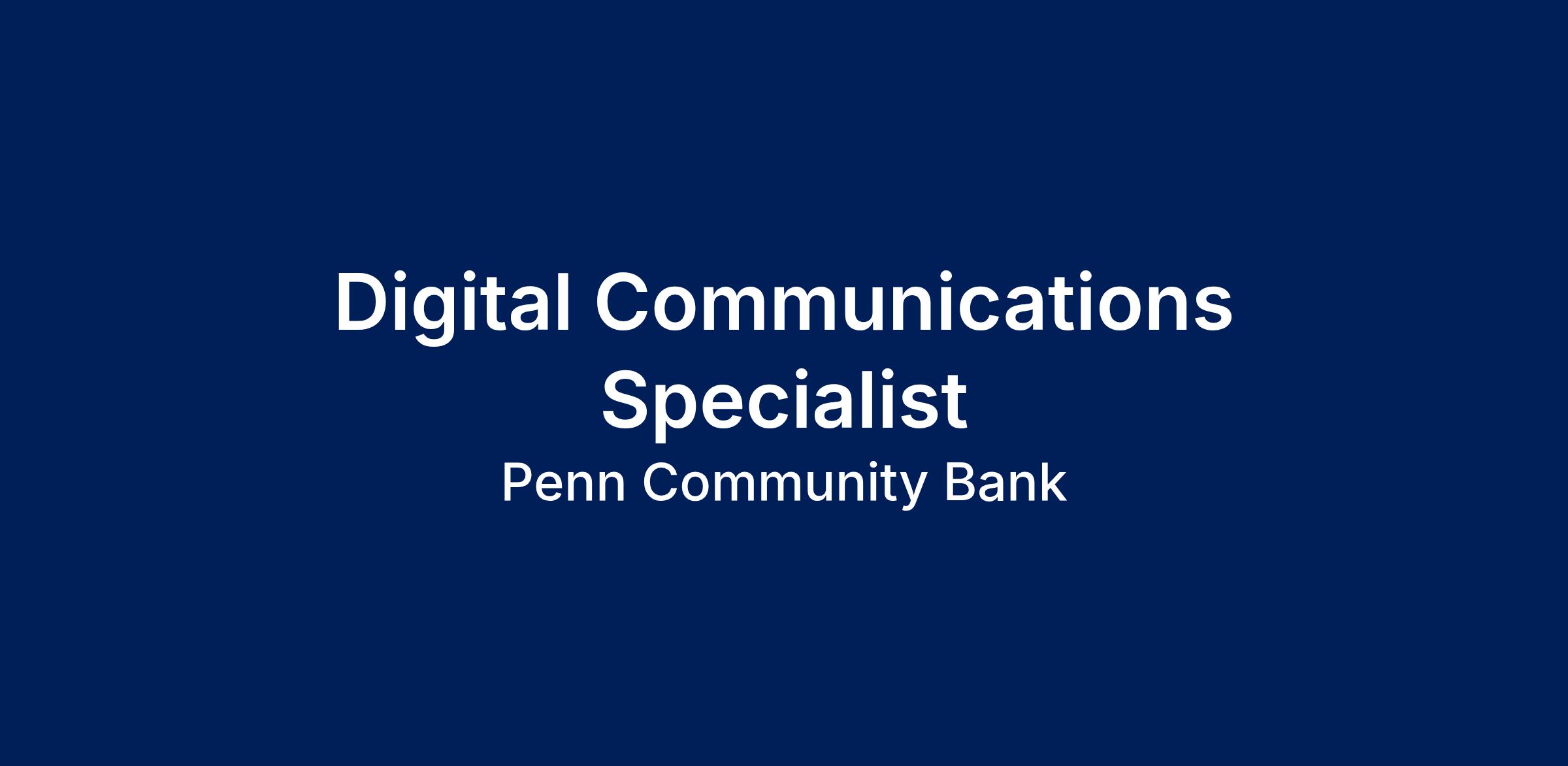 Job description: Essential Functions The following is a list of essential functions, which may be subject to change at any time and without advance notice. Management may assign new duties, reassign existing duties, or eliminate a function. Tactical Communication Execution Build & deploy assets across email (including uploading creative assets), ATM screens, branch TVs, social, online and mobile banking, and app/SMS messages. Implement communications using copy and direction provided by the Communications & Digital Media Manager, ensuring accurate deployment across channels. Manage segmentation, audience lists, tagging, and any UTM tracking. Perform QA for all communications/paid media needs before launch. Maintain communication templates and email lists. Digital Reporting and Analytics Support Build and maintain dashboards for email, website updates, SEO/PPC insights, and campaign performance. Communicate insights and make recommendations to Communications & Digital Media Manager and the Senior Manager Digital Marketing. Support A/B testing execution (setup, monitoring, measurement). Digital Operations Support Support Communications & Digital media Manager with day-to-day agency operations Ensure pages remain accurate, compliant, and up to date. Support testing and QA for digital experiences and content updates. Template management and email list operational hygiene. Workflow and Administrative Support Support Communications & Digital Media Manager in routing, compliance submissions, and project tracking. Manage agency tactics along with Communications & Digital Media Manager and operational tasks as assigned. Compliance Comply with applicable bank regulations, such as regulations governing currency transactions, purchase of negotiable instruments, and money laundering (BSA, AML). Comply with all applicable regulations and Bank policies regarding employment and employment law. Participate in annual compliance and other job-related training. Relationships and Contacts Internal: Frequent communication with marketing leadership; contact with Team Members at various levels and departments throughout the Bank as needed. External: Occasional contact with current and prospective customers as well as Marketing vendors. Education and Experience Minimum 1-3 years’ experience in marketing – banking preferred. Bachelor’s Degree or completion of relevant university courses in Marketing, Graphic Design, and Communications. Skills and Competencies Knowledge of financial services is desirable. Proficiency in Microsoft Word, PowerPoint, and Excel. Good organizational and time management skills. Strong editorial skills in English composition, grammar, and proofreading. Strong written and oral communication skills. Strong in attention to detail and accuracy. Ability to work with a diverse group of professionals. Hands-on experience with A/B testing setup and measurement, attribute-based targeting, audience segmentation, and enterprise email and messaging platforms (e.g.: Salesforce Marketing Cloud, HubSpot, NCR). Working Conditions Traditional office environment with no unusual work conditions; the office maintains five day a week operations (Monday – Friday) with operational hours of 8:00am – 5:00pm. Must be available to attend events on evenings and weekends as necessary. Physical Demands Penn Community promotes an equal opportunity workplace, which includes reasonable accommodations of otherwise qualified disabled applicants and employees. Please contact Human Resources with questions regarding the physical demands of this position. Lifting/carrying up to 20 lbs. Manual dexterity for computer work Speaking, hearing, and vision are required to perform essential functions Penn community Bank is an equal opportunity employer. Thank you for your interest in joining the Penn Community Bank Team! Penn Community Bank holds $3 billion in assets, employs more than 300 people, and offers banking and lending services at financial centers throughout southeastern Pennsylvania. As an independent, mutual financial institution, Penn Community Bank is not publicly traded and operates with its long-term mission in mind: to help businesses grow and prosper, to provide financial resources to individuals and families throughout their lifetimes, to strengthen the local economy, and to partner with local organizations to act as a catalyst for positive growth in every market it serves.