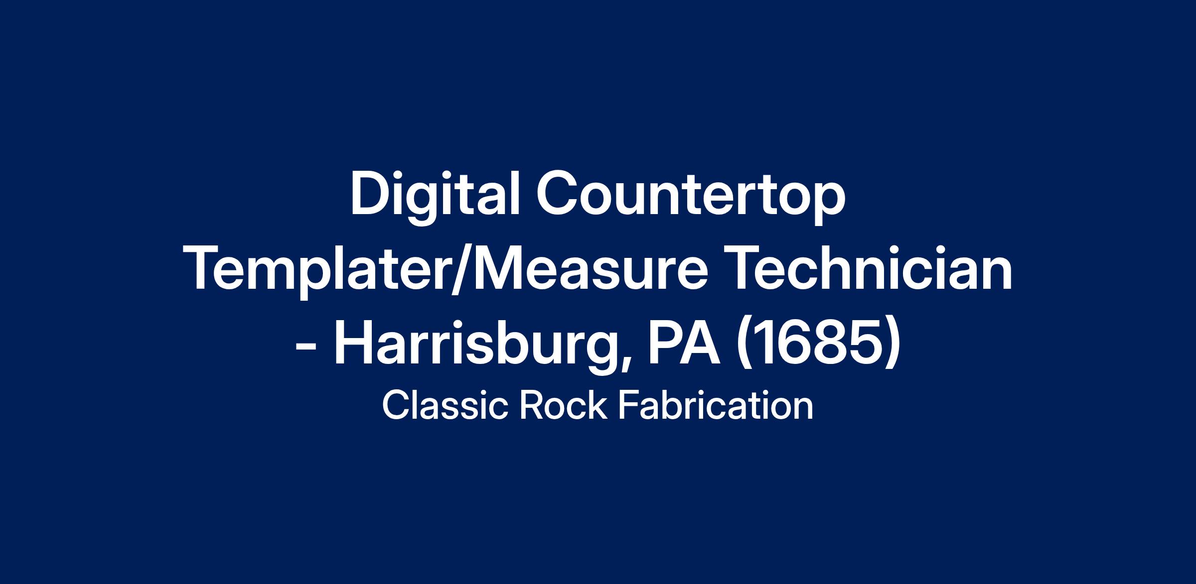 DescriptionAre you a detail-oriented professional with experience in templating and a passion for delivering top-notch customer service? Classic Rock Fabrication is a leading manufacturer and installer of granite, quartz, laminate, and solid surface countertops, and we’re searching for an experienced Measure Technician/Countertop Templater to join our team and working in the Harrisburg, PA Area.
