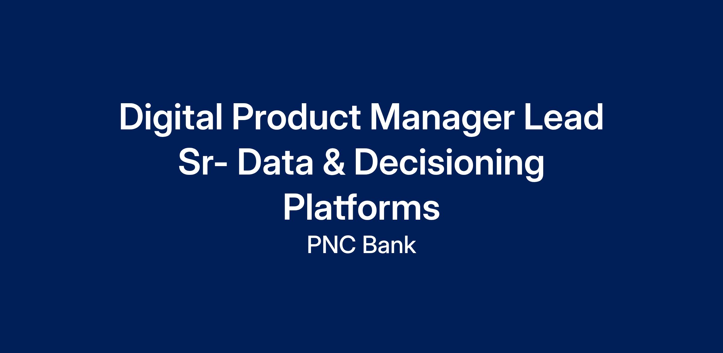 At PNC, our people are our greatest differentiator and competitive advantage in the markets we serve. We are all united in delivering the best experience for our customers. We work together each day to foster an inclusive workplace culture where all of our employees feel respected, valued and have an opportunity to contribute to the company’s success. As a Digital Product Manager Lead Sr within PNC's MarTech organization, you will be based in a Marketing Hub for PNC.
