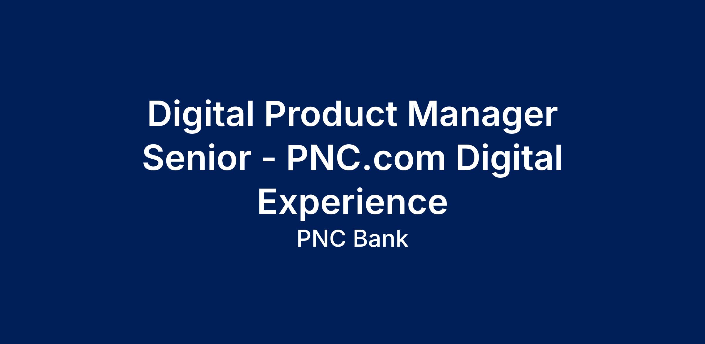 This Digital Product Manager Sr. sits at the intersection of marketing, technology and customer experience and will develop impactful digital experiences that help shape the future of PNC.com—our enterprise digital storefront—by building scalable, customer-centric solutions that drive business growth and deepen client engagement.