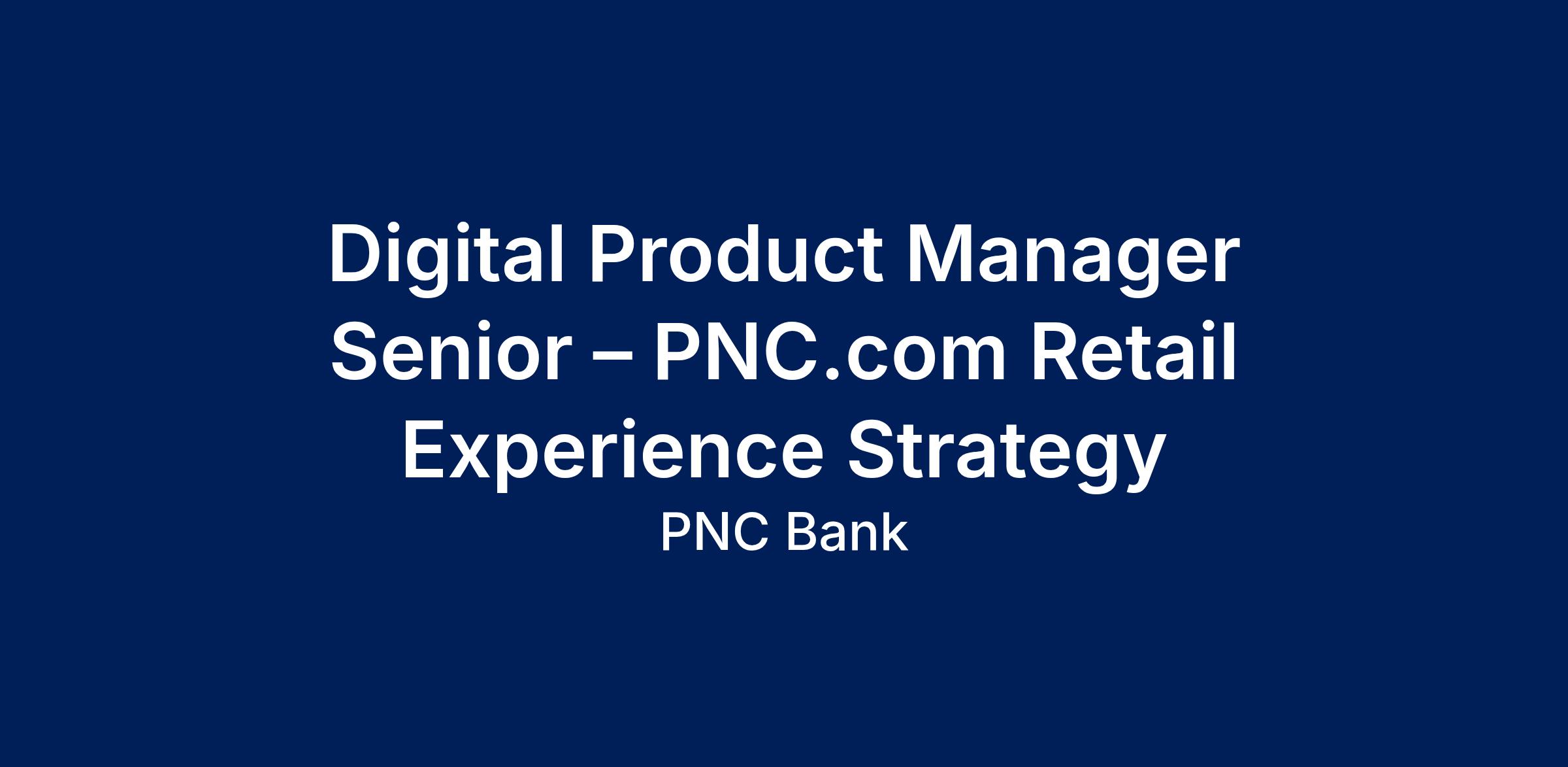 At PNC, our people are our greatest differentiator and competitive advantage in the markets we serve. We are all united in delivering the best experience for our customers. We work together each day to foster an inclusive workplace culture where all of our employees feel respected, valued and have an opportunity to contribute to the company’s success. As a Digital Product Manager Sr. within PNC’s MarTech and Digital Experience organization, you will play a key role in shaping the future of PNC.com—our enterprise digital storefront. This role may be based in Pittsburgh, PA, Cleveland, OH, or Birmingham, AL.