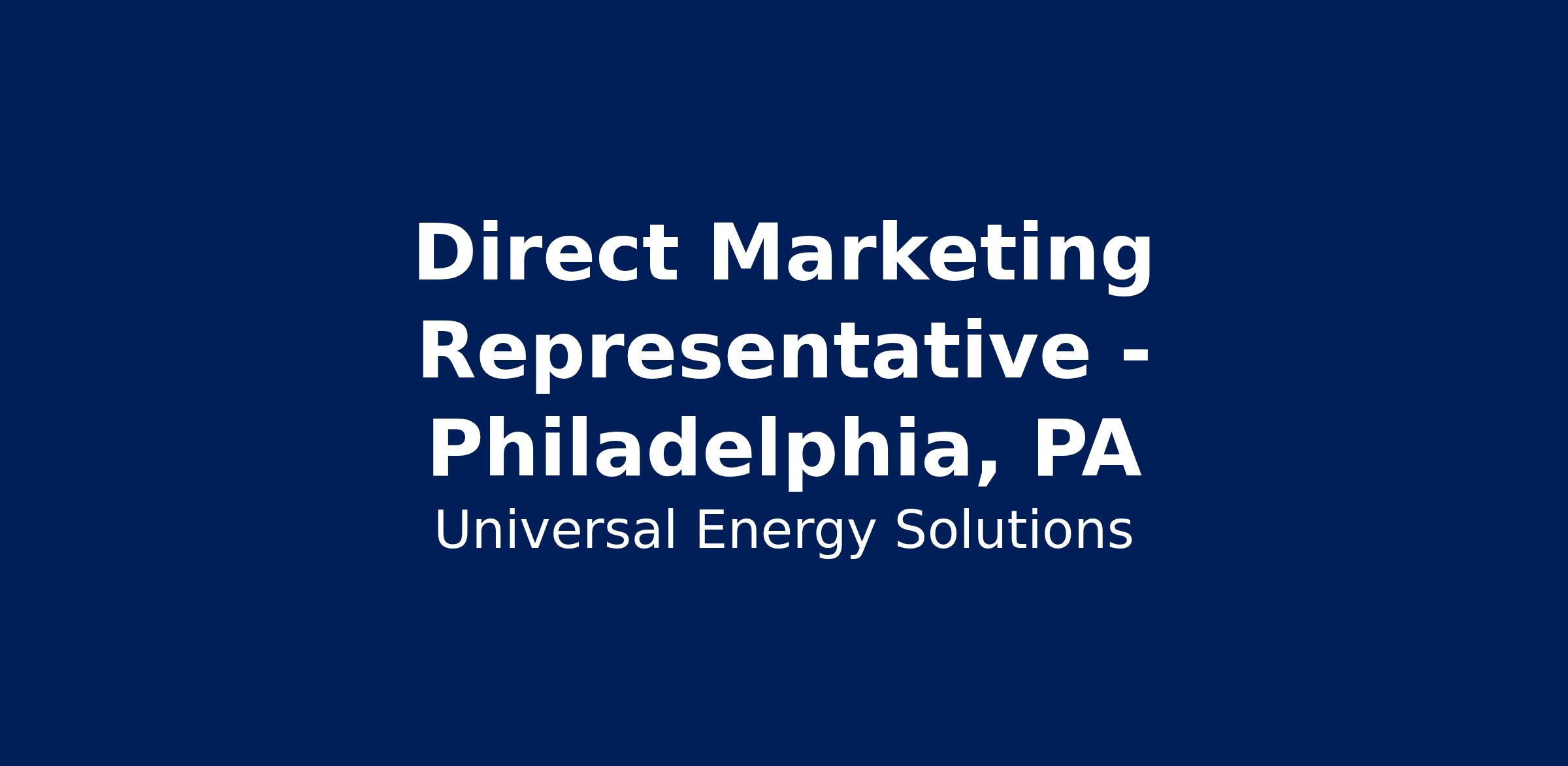 Universal Energy Solutions, a leading provider of sustainable energy solutions, is seeking a Direct Marketing Representative to join our team in Philadelphia, PA. In this role, you will be responsible for developing and implementing targeted marketing campaigns designed to promote our innovative energy solutions to small and medium-sized businesses throughout the Greater Philadelphia area. Your efforts will play a crucial role in raising awareness and generating interest among potential clients, ultimately contributing to the company's growth and success.