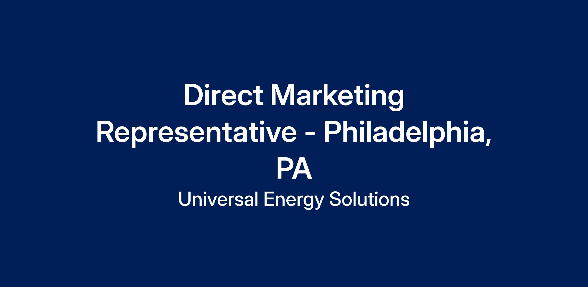 Universal Energy Solutions, a leading provider of sustainable energy solutions, is seeking a Direct Marketing Representative to join our team in Philadelphia, PA. In this role, you will be responsible for developing and implementing targeted marketing campaigns designed to promote our innovative energy solutions to small and medium-sized businesses throughout the Greater Philadelphia area. Your efforts will play a crucial role in raising awareness and generating interest among potential clients, ultimately contributing to the company's growth and success.