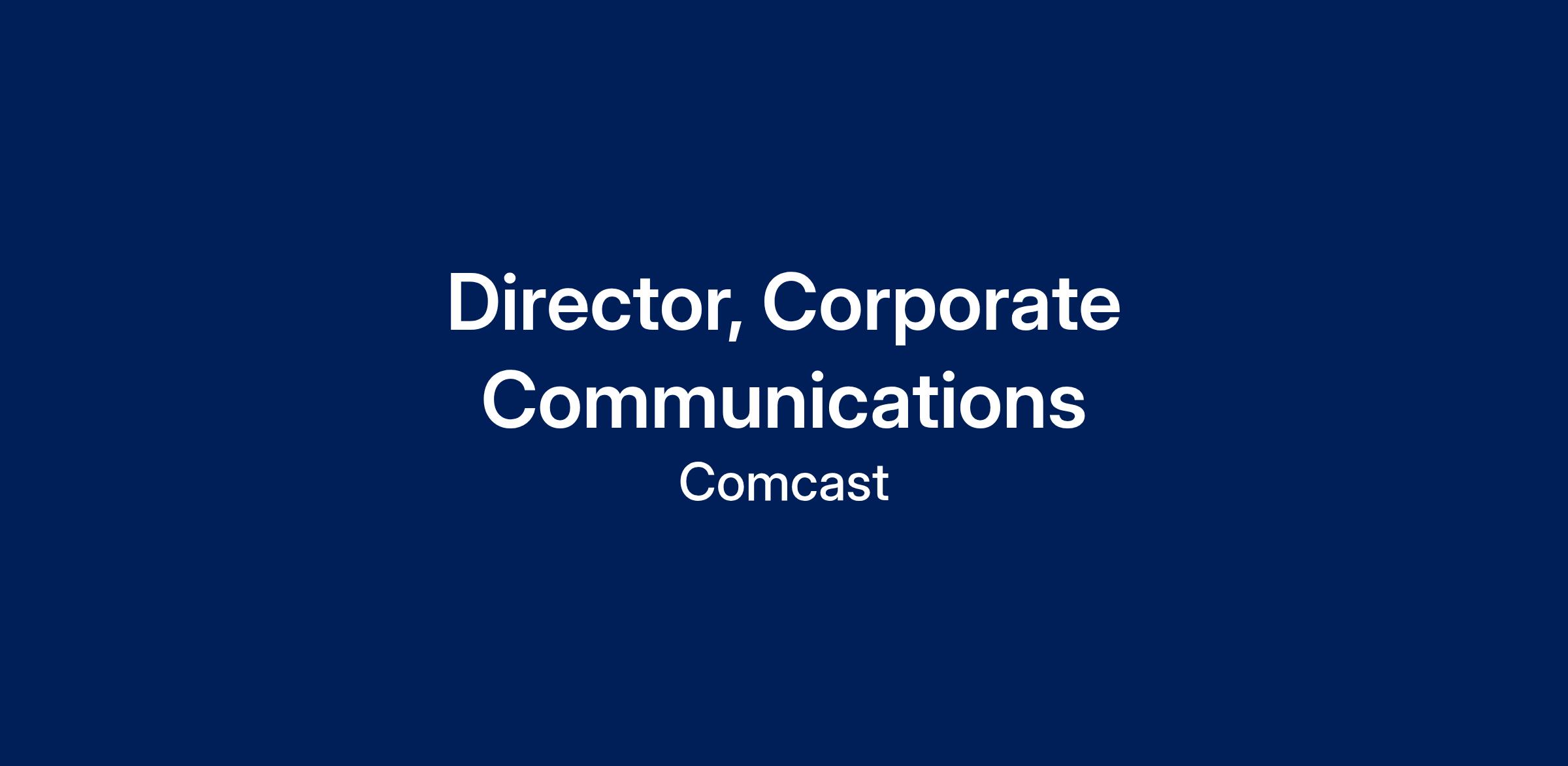 Comcast is seeking a strategic, collaborative, and highly skilled Director of Corporate Communications to join the Corporate and Financial Communications team. In this role, you’ll help shape and share Comcast’s story across several areas, including the company’s environmental initiatives, content and programming partnerships, the company’s work with emerging entrepreneurs through Start-up Engagement and LIFT Labs, and supporting other corporate and financial communications related projects.