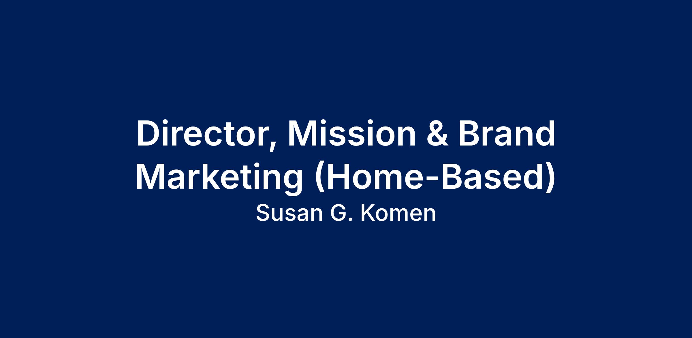 The Director, Mission & Brand Marketing is a senior marketing leader responsible for driving integrated planning, audience insights, performance marketing strategy, and cross-channel campaign orchestration across Susan G. Komen’s marketing ecosystem with a focus on Mission and Brand marketing. Reporting to the VP, Brand Marketing & Partnerships, this role ensures that brand, mission, community, partnership, and digital marketing efforts work together cohesively to strengthen awareness, engagement, participation, and meaningful action among individuals, communities, and organizations.