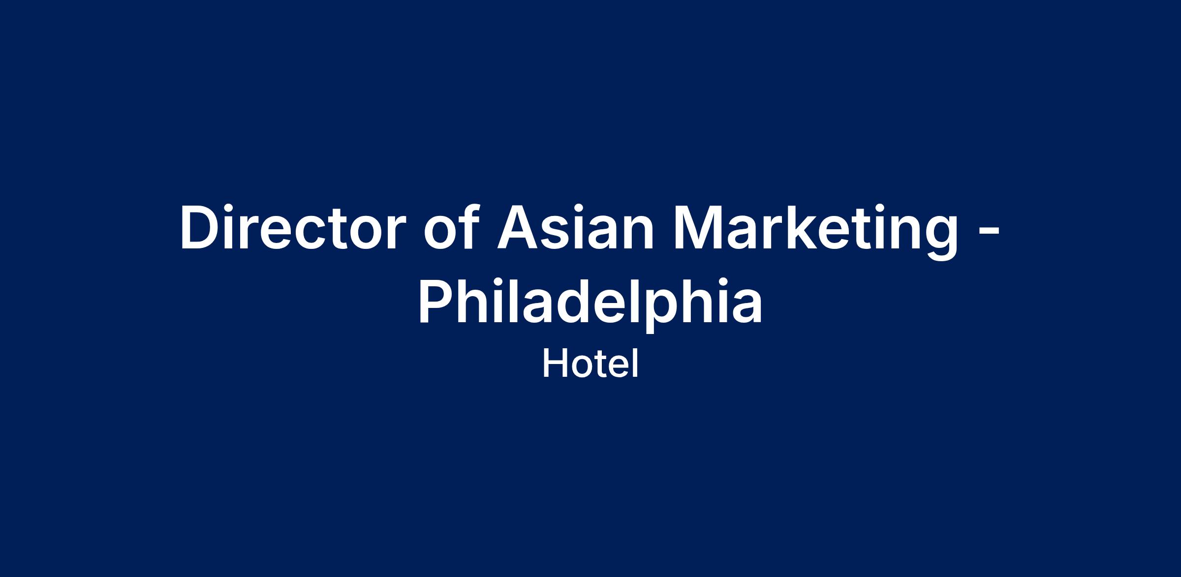 The Director of Asian Marketing is responsible as a key resource to the Vice President of Casino Marketing and the SVP Marketing in developing Live! Casino Hotel as the premier gaming and entertainment venue for Asian guests in the mid-Atlantic region. This individual manages and executes all strategies, sales and marketing programs geared toward Asian guests as well as planning and coordinating marketing campaigns and event functions both on and off property. In addition, building and maintaining close relationships with the local Asian community will be paramount to success in this role.