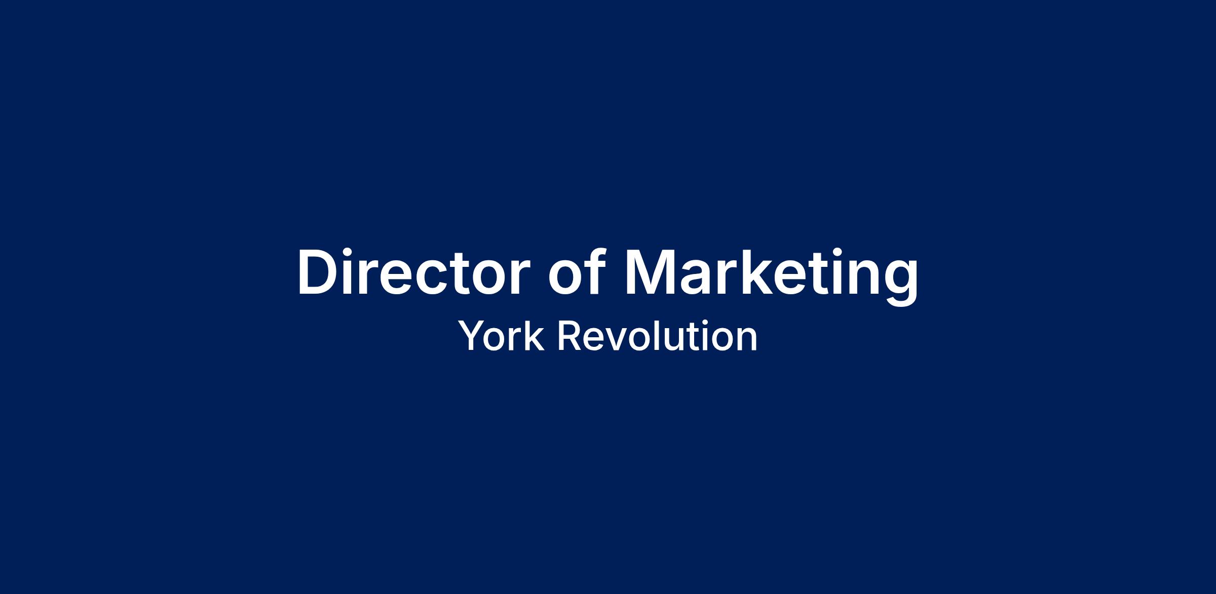 The primary goal of the Director of Marketing for the York Revolution is to increase sales of tickets and other products for the team and events at Wellspan Park in York, Pennsylvania. This includes developing and implementing a consumer marketing and advertising strategy as well as supporting the work of the Sales Department by creating a receptive audience of advertisers and group sales purchasers. The primary and ultimate measure of success for this position is the sale of tickets and similar purchases for Revolution baseball games and related businesses. This position plays a key role in defining and promoting the York Revolution brand, including overseeing all graphic and creative design.