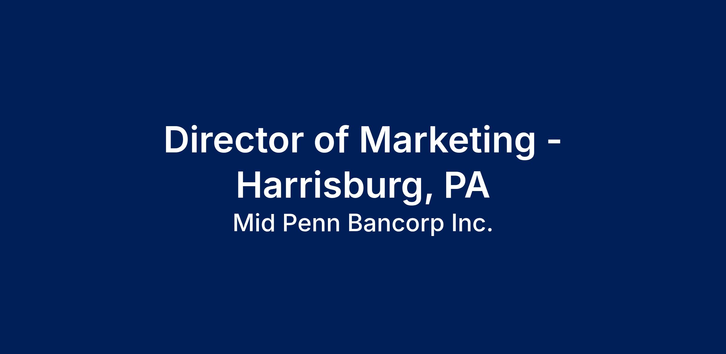 A great banking experience starts with a great team! Mid Penn Bank is actively seeking a Director of Marketing to join our team.