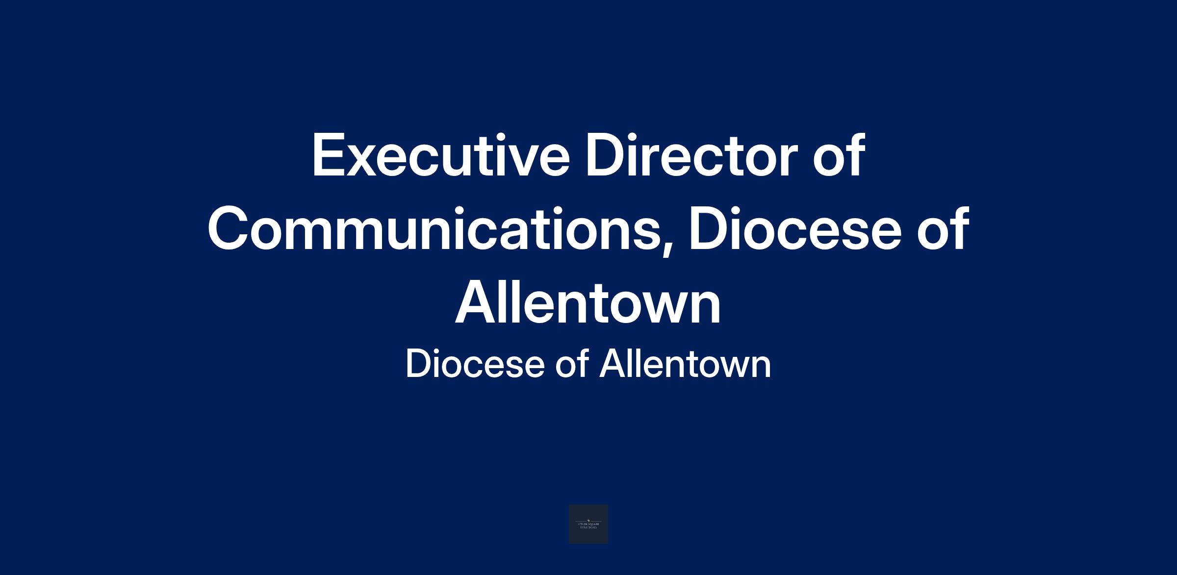 This position is an extension of the Bishop's ministry in the five counties of the Diocese of Allentown. The Executive Director of Communications must be well-formed in the Catholic faith and have a willingness and ability to represent the Bishop and the authentic teachings of the Catholic Church without equivocation through a wide range of communications and public relations activities.