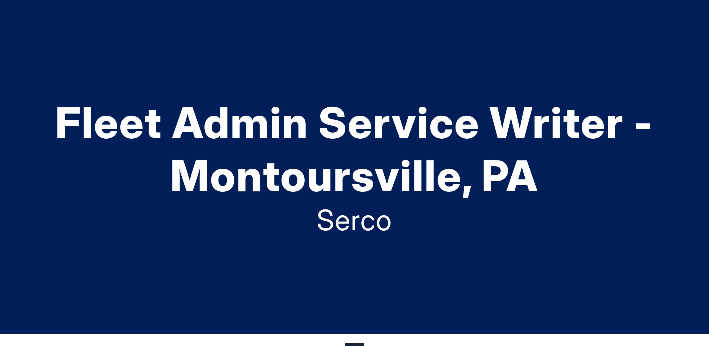 Looking for a Fleet Service Writer opportunity at a place you can make a difference every day? Discover this great opportunity in Montoursville, PA. Serco is the nationwide leader in our industry and works exclusively for large, utility fleet customers throughout the U.S. Bring your experience and industry skills and become a part of the Serco Fleet Maintenance Services team.