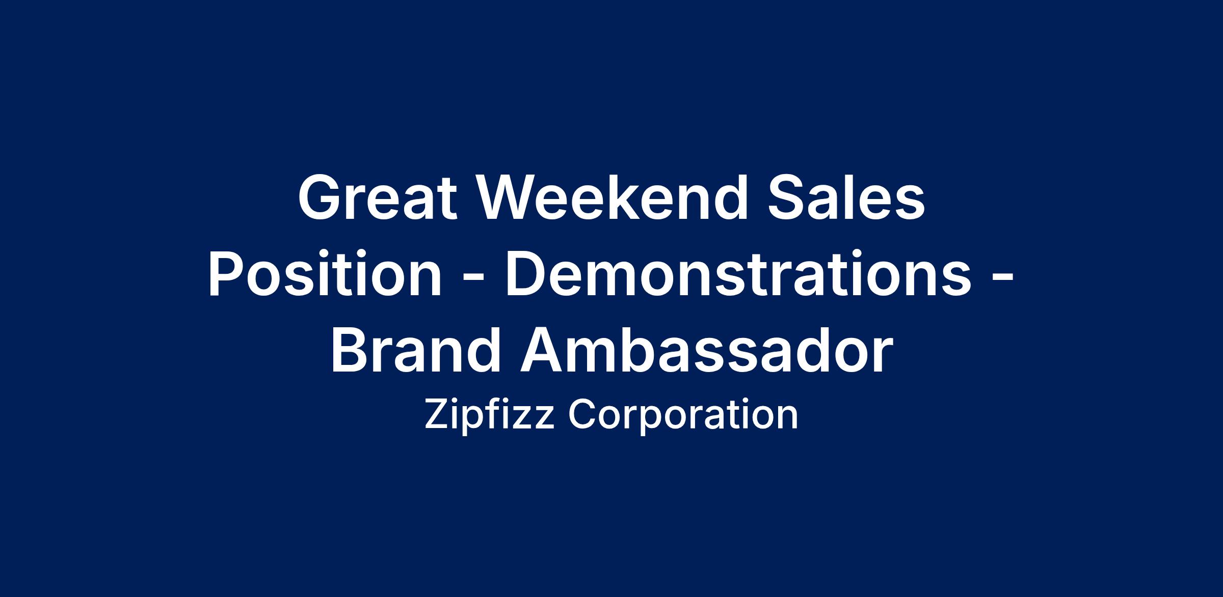 Great Weekend Sales Position - Demonstrations - Brand Ambassador