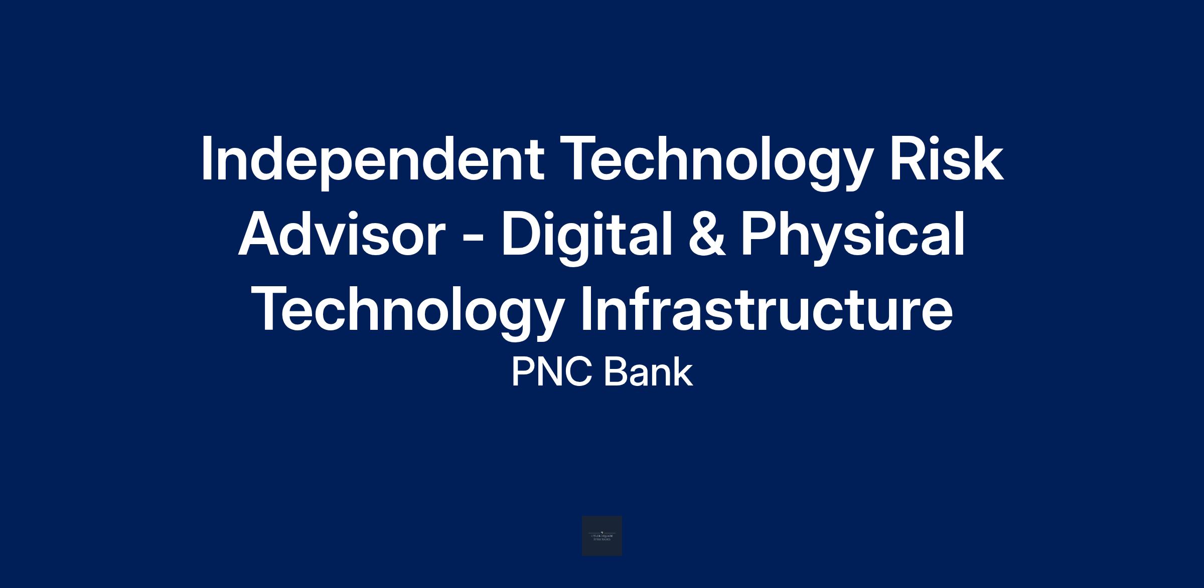 At PNC, our people are our greatest differentiator and competitive advantage in the markets we serve. We are all united in delivering the best experience for our customers. We work together each day to foster an inclusive workplace culture where all of our employees feel respected, valued and have an opportunity to contribute to the company’s success. As an Independent Technology Risk Advisor within PNC's Independent Technology Risk organization, you will be based in Pittsburgh, PA or Cleveland, OH.
